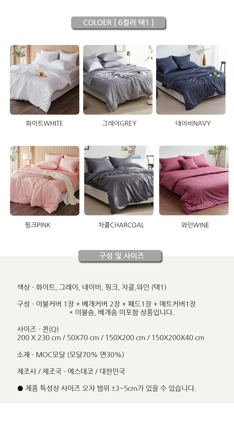 MOC 모달 보들보들한 이불커버침구풀세트Q퀸 네이비