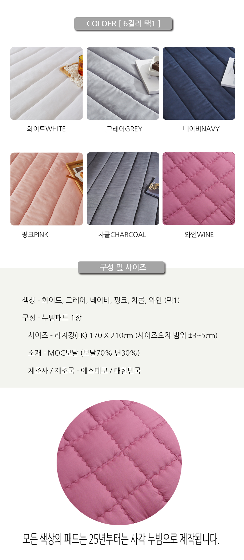 MOC 면모달 보들보들한 일자패드 LK라지킹 5컬러