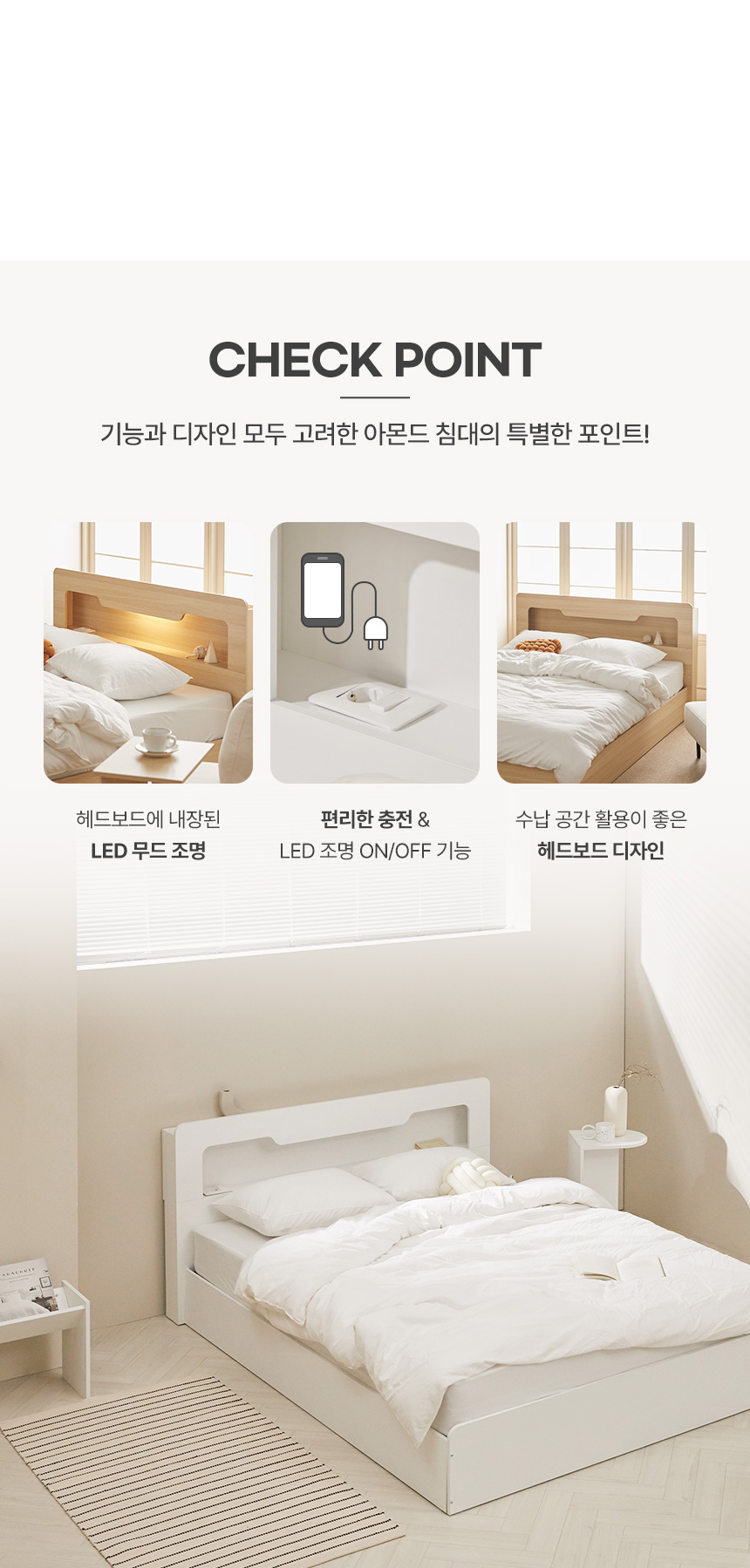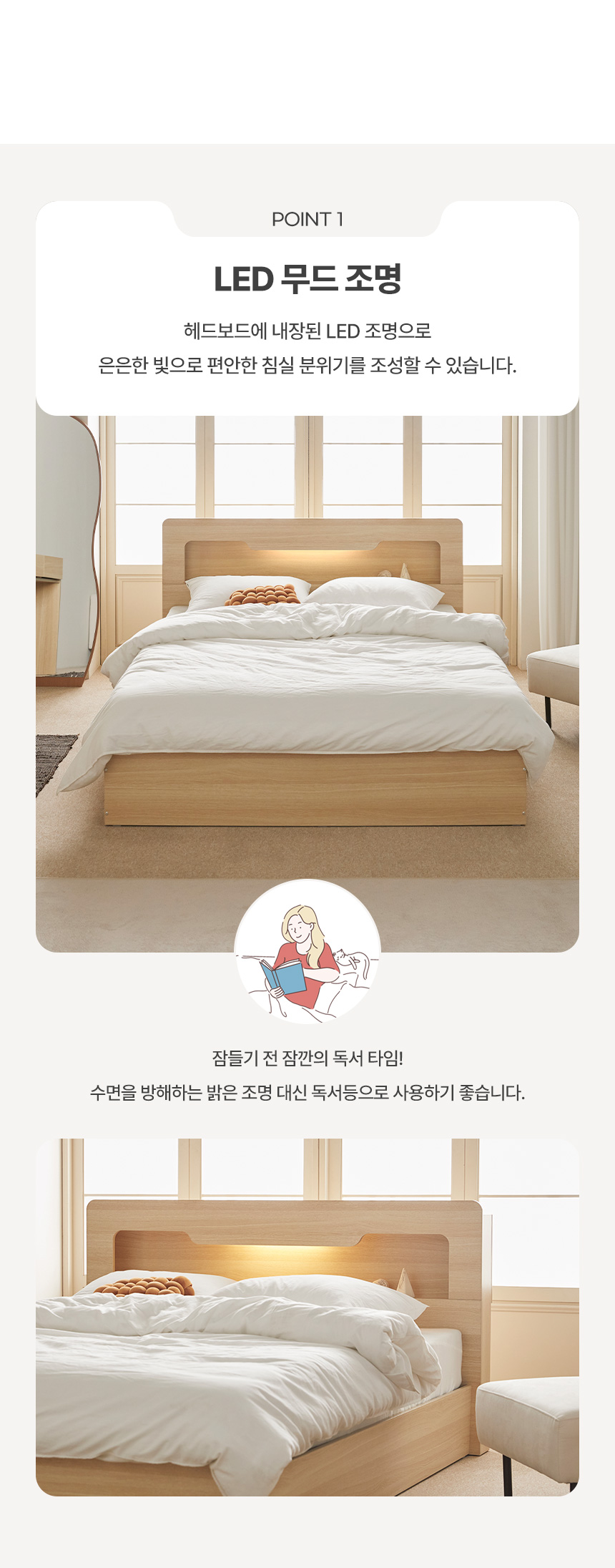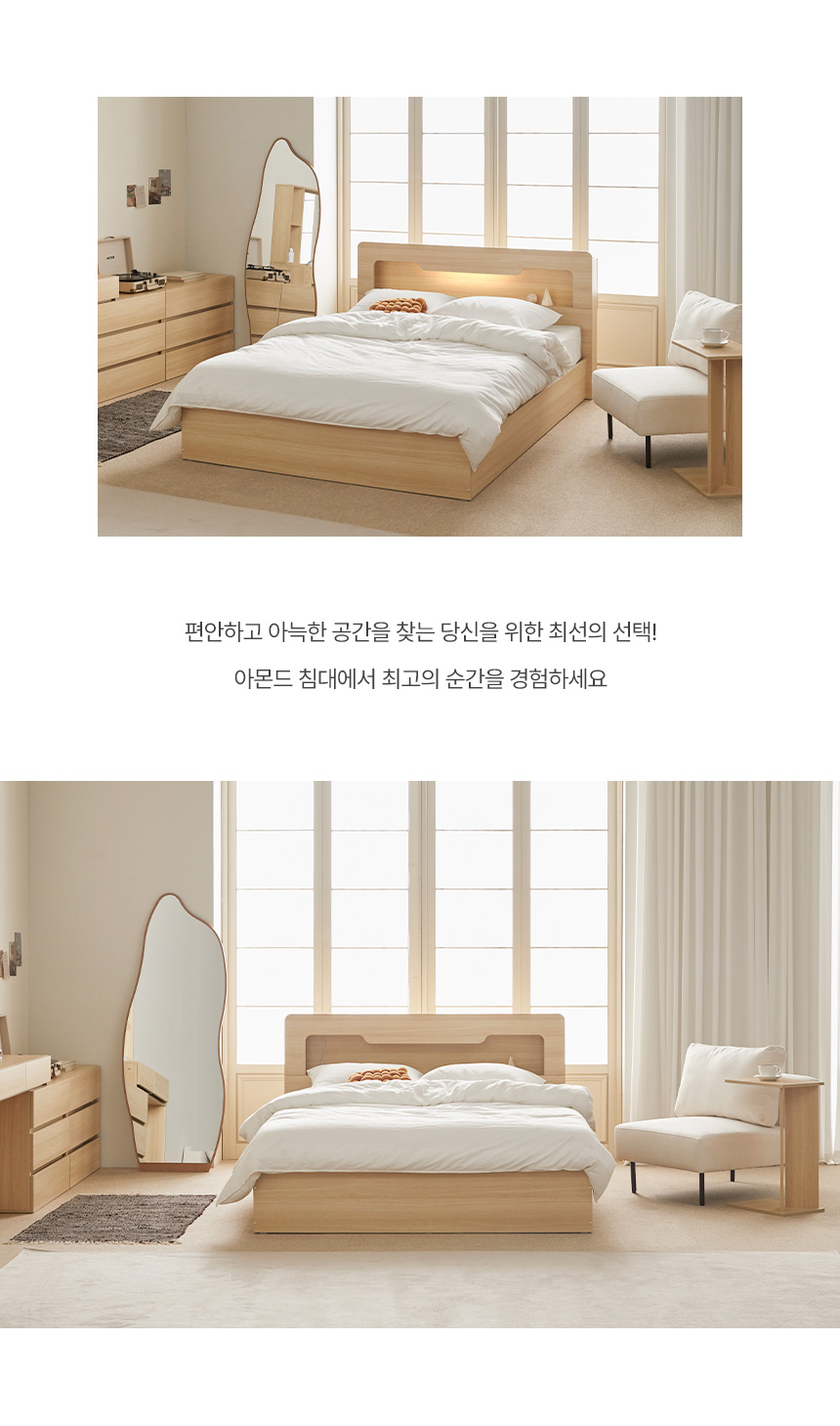 최종 구매가 117,000 // 귀여운 침대 / 아몬드 LED 수납헤드 평상형침대 SS 프레임