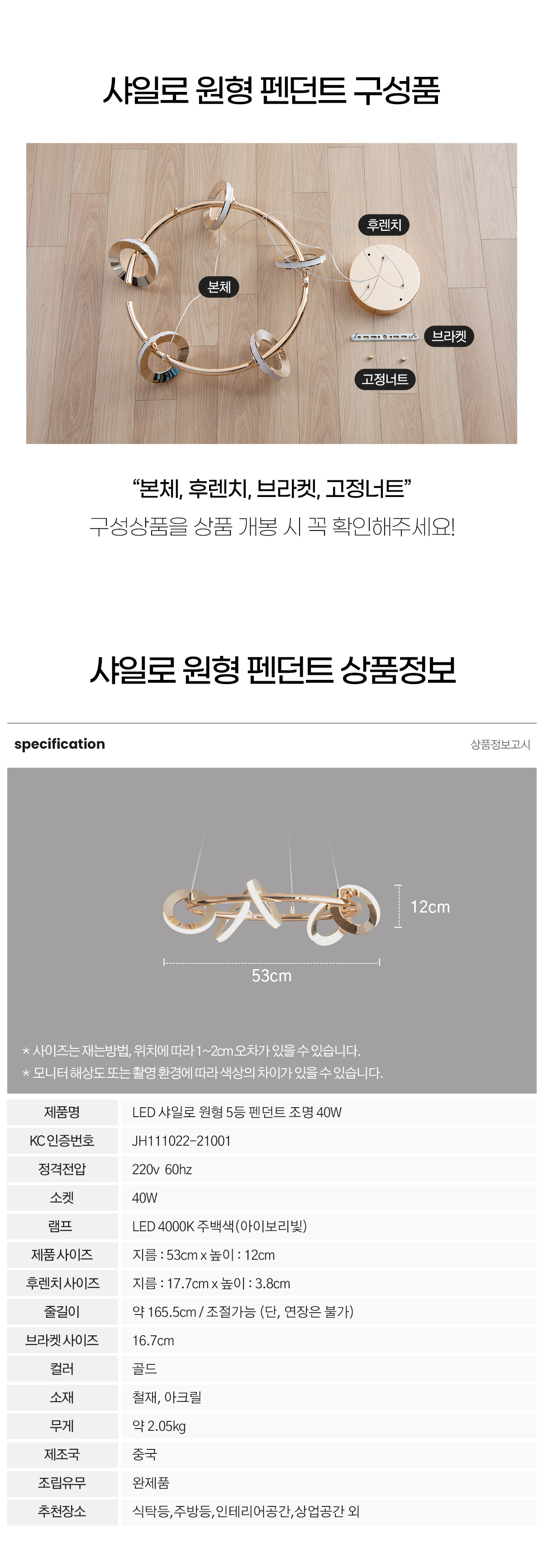 LED 샤일로 원형 5등 식탁등 식탁조명 40W