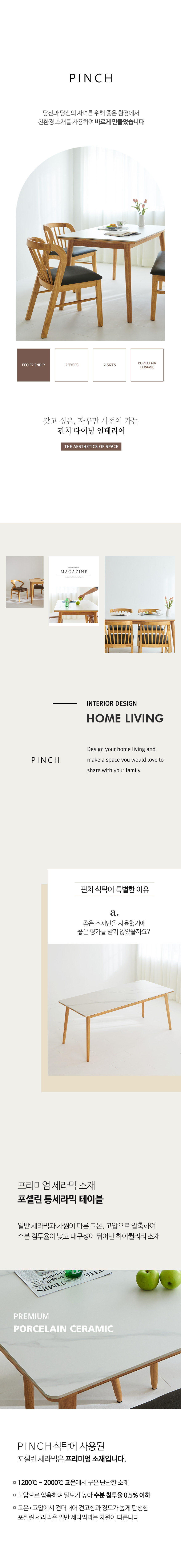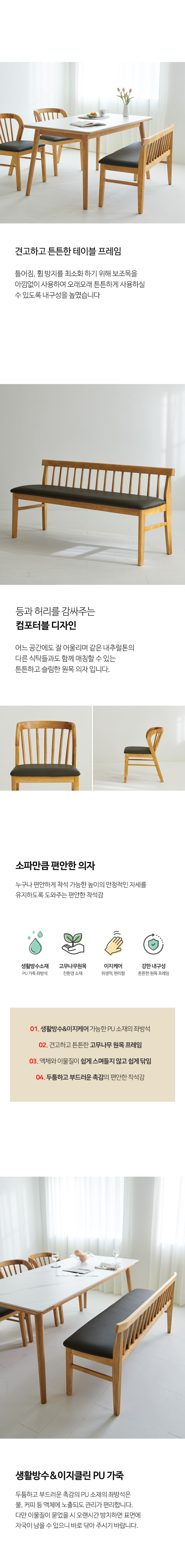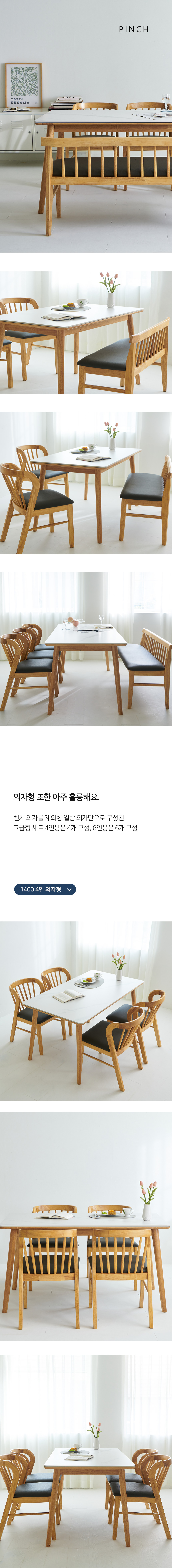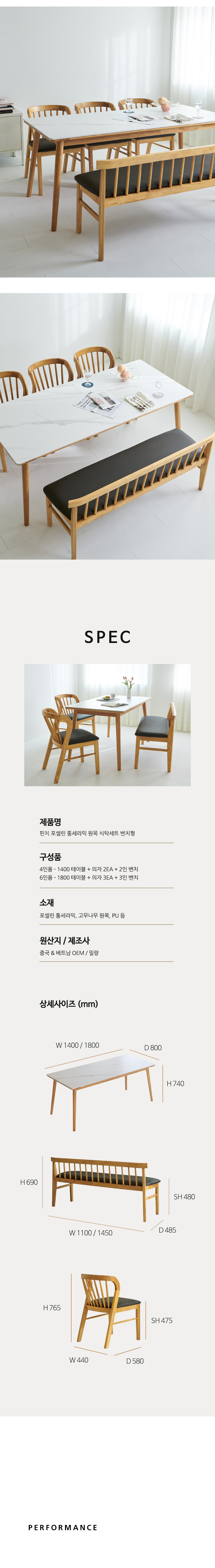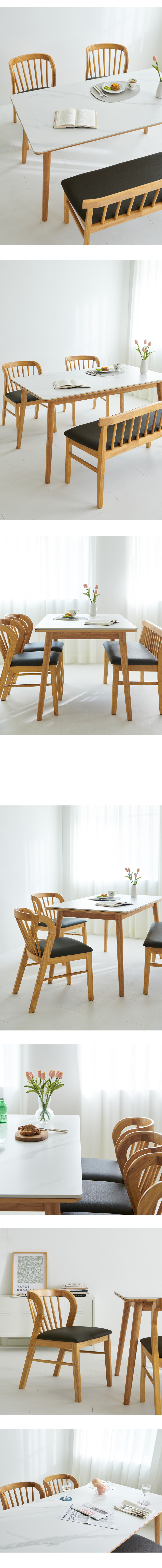 밀랑 핀치 포셀린 통세라믹 원목 1400 식탁세트 4인 벤치형