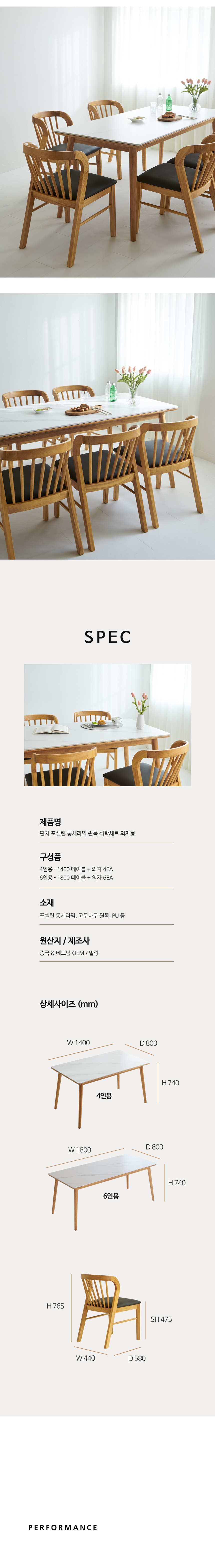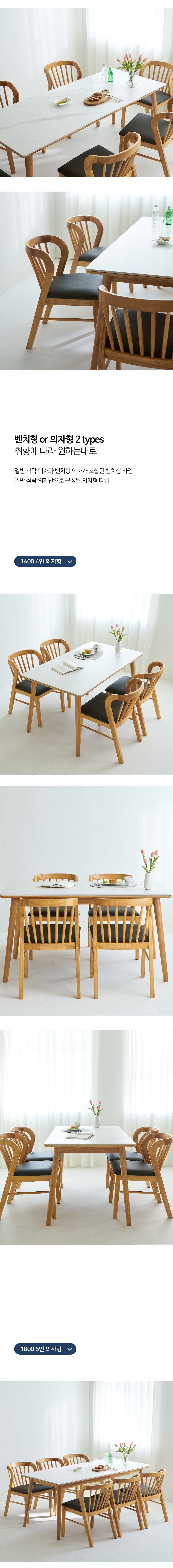 밀랑 핀치 포셀린 통세라믹 원목 1800 식탁세트 6인 의자형