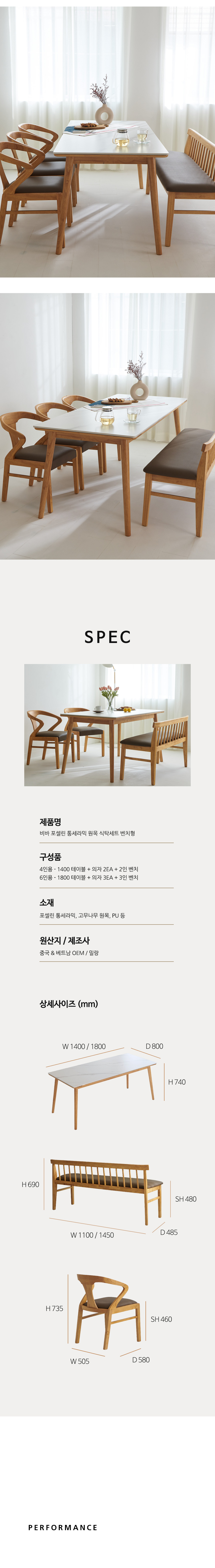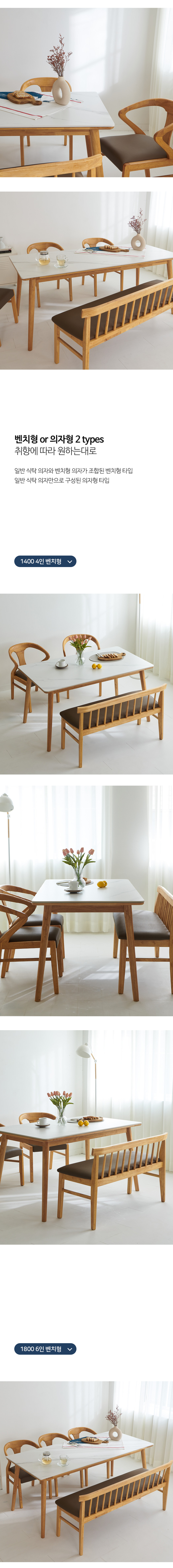 밀랑 비바 포셀린 통세라믹 원목 1400 식탁세트 4인 벤치형