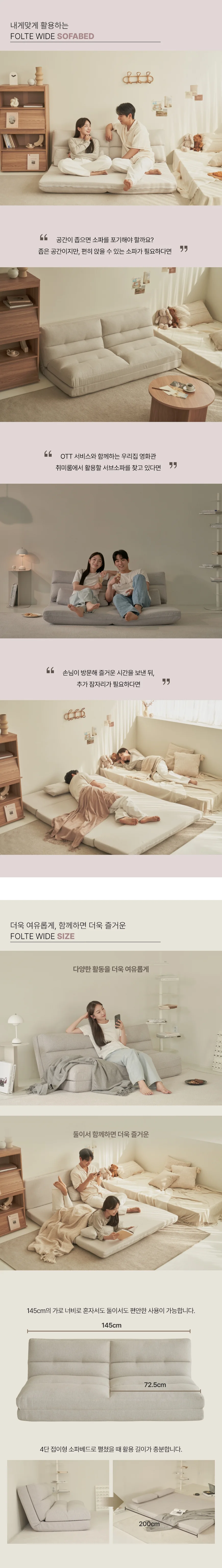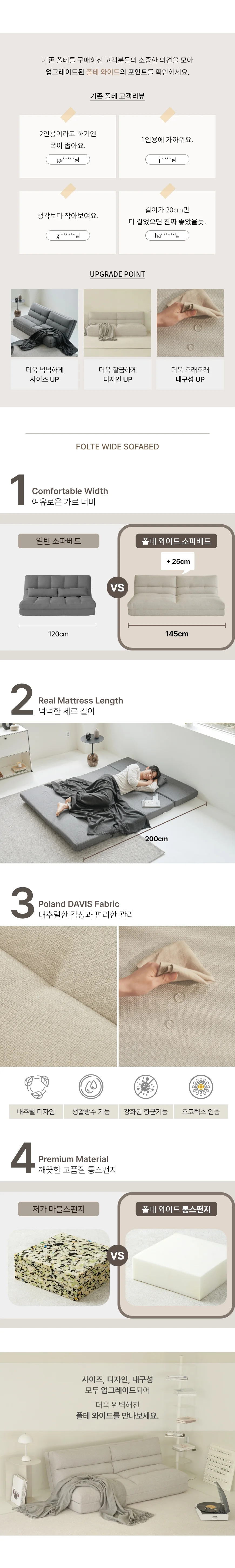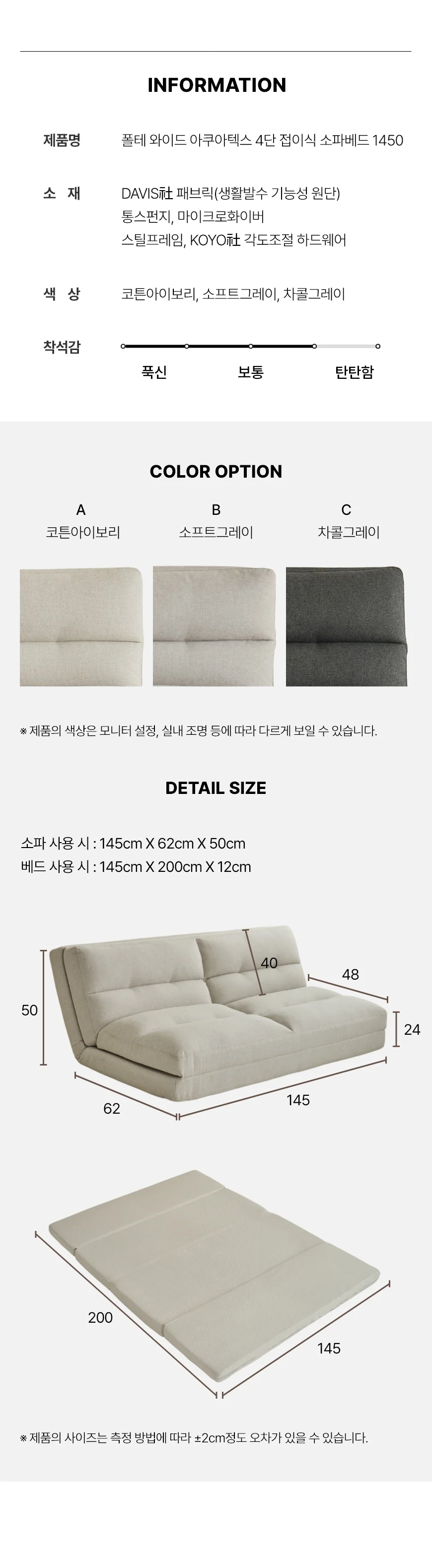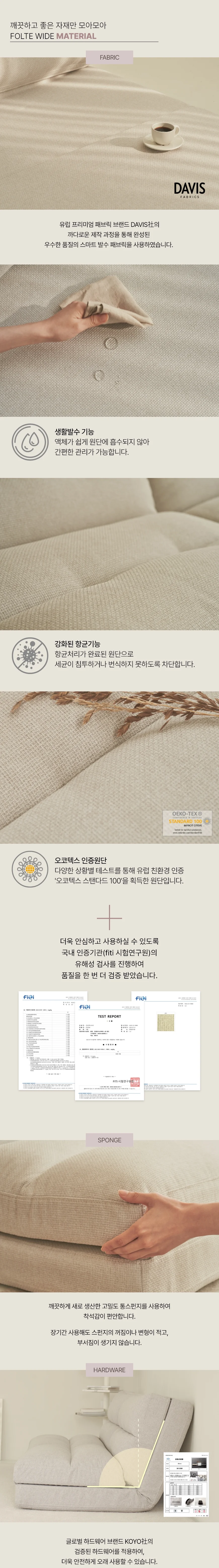 (한샘몰pick) 폴테 와이드 아쿠아텍스 4단 접이식 소파베드 1450