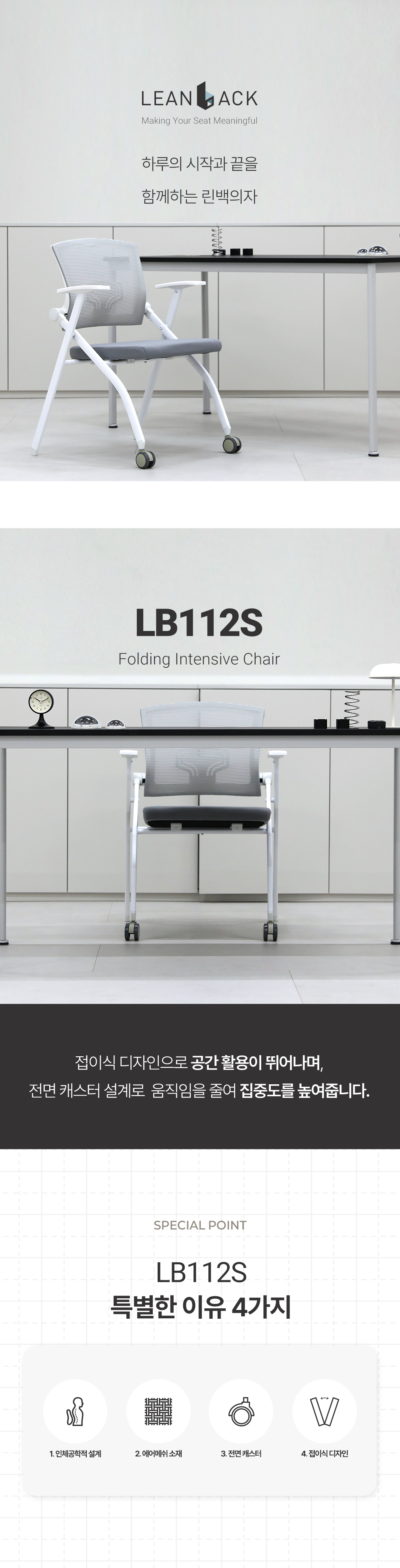 린백 LB112S 접이식 컴퓨터 책상 학생 공부 편한 의자 사무실 회의실 의자