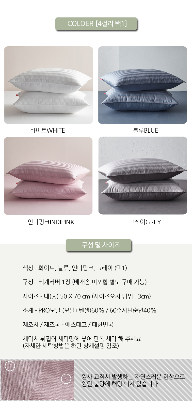 프로모달 2cm라인 보들보들한 호텔식베개커버50X70 4컬러