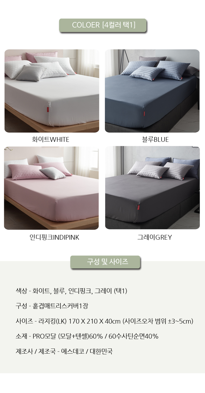 프로모달 이음선없는 광폭 보들보들한 매트커버LK 4컬러