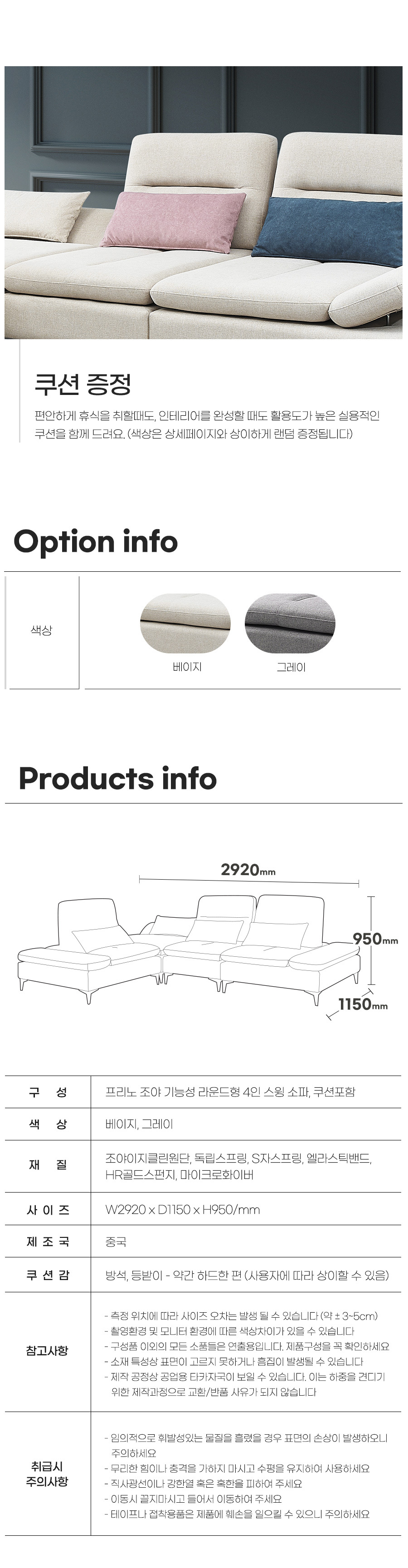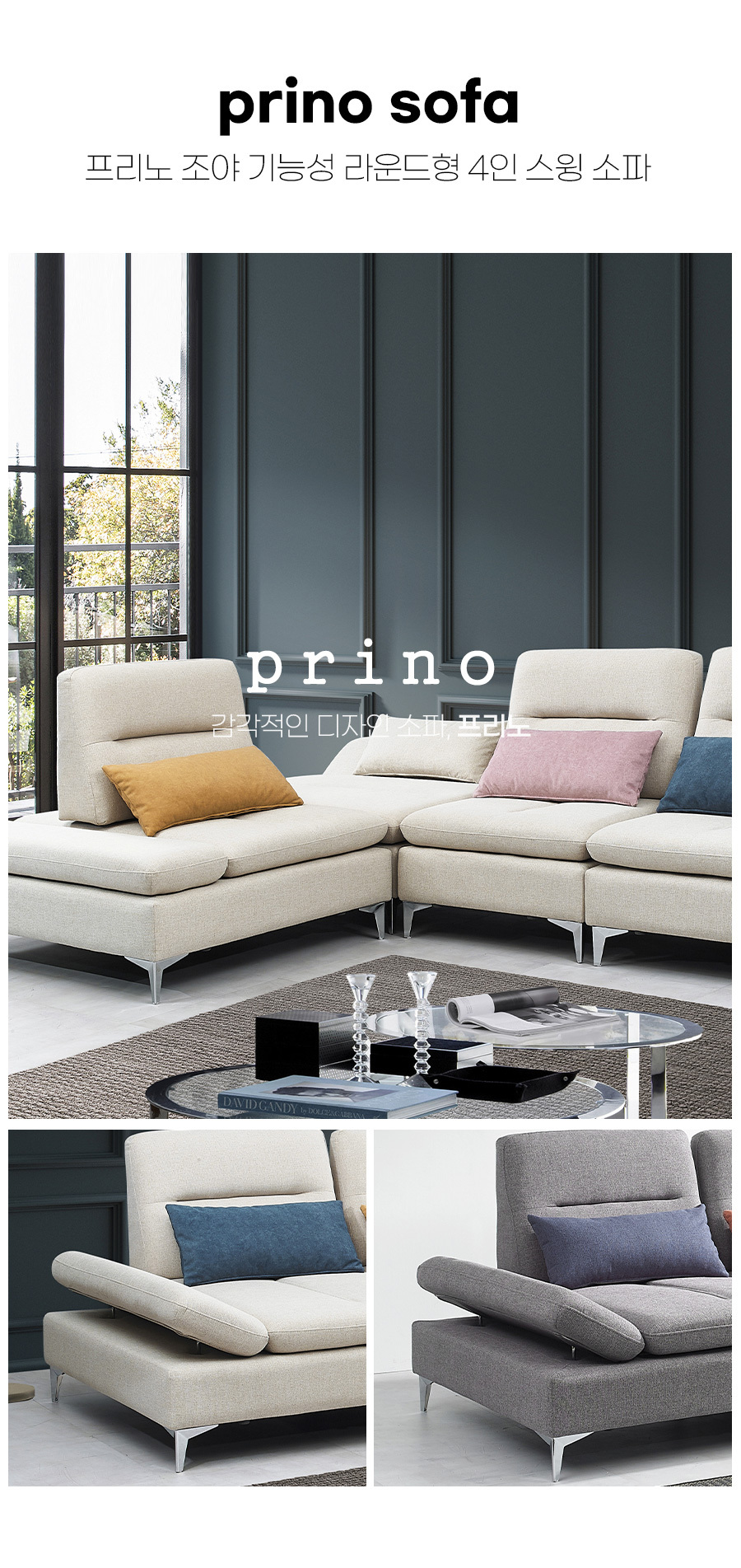 프리노 이지클린 조야원단 등받이조절 기능성 라운드형 4인 스윙 소파 (쿠션포함) - 2color