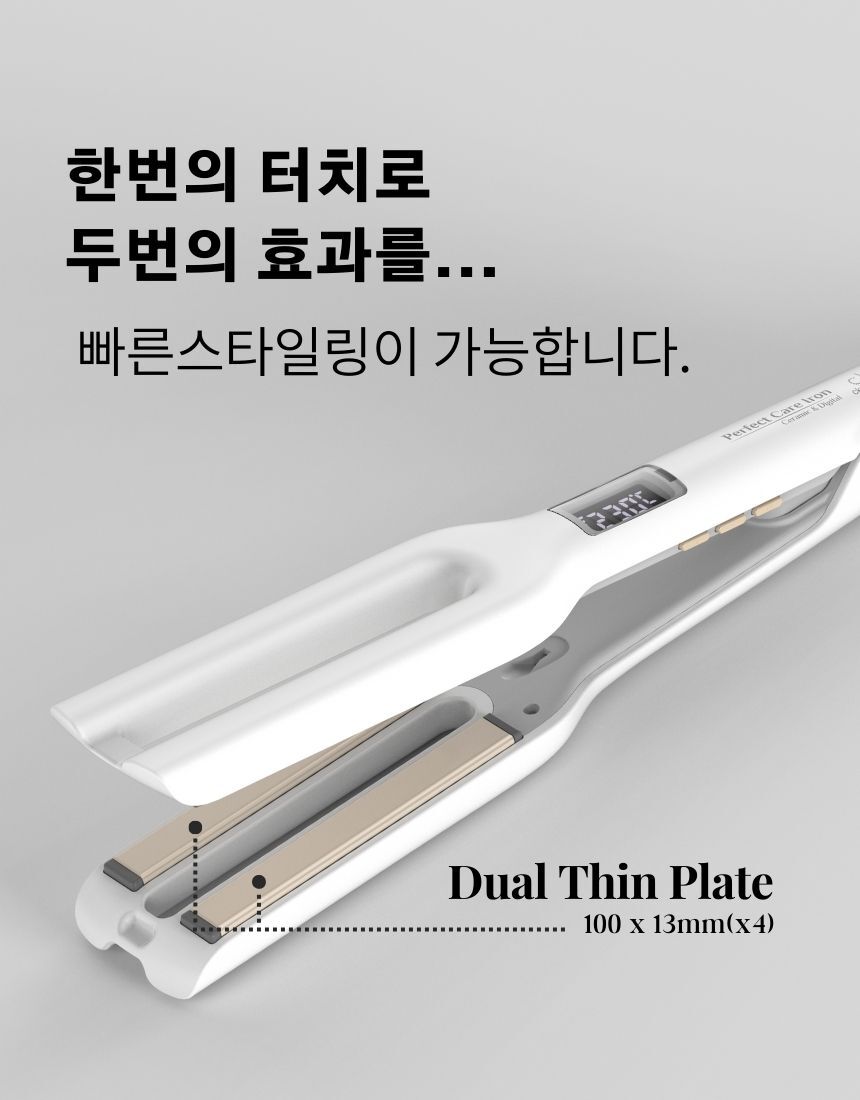 CKI-F710 세라믹 듀얼 플레이트 디지털 온도조절 고데기 매직기 화이트골드