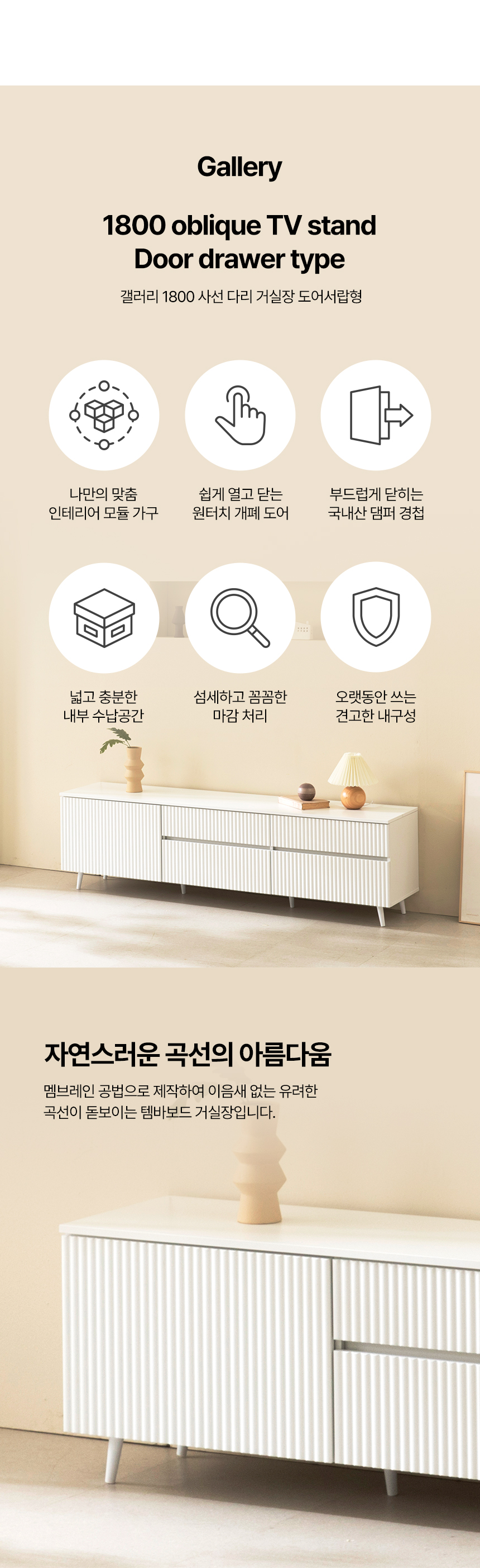 갤러리 1800 템바 올화이트 철제 도어서랍 높은 거실장 tv다이