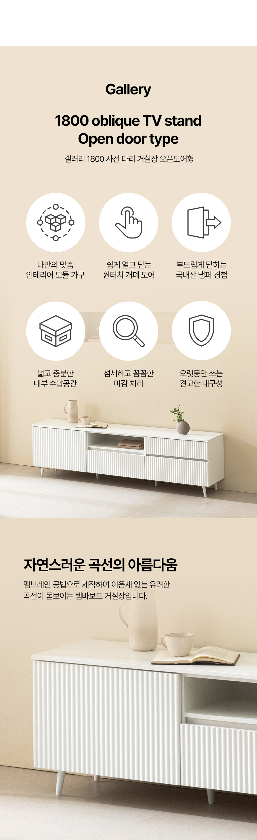 갤러리 1800 템바 올화이트 철제 오픈도어 높은 거실장 tv다이