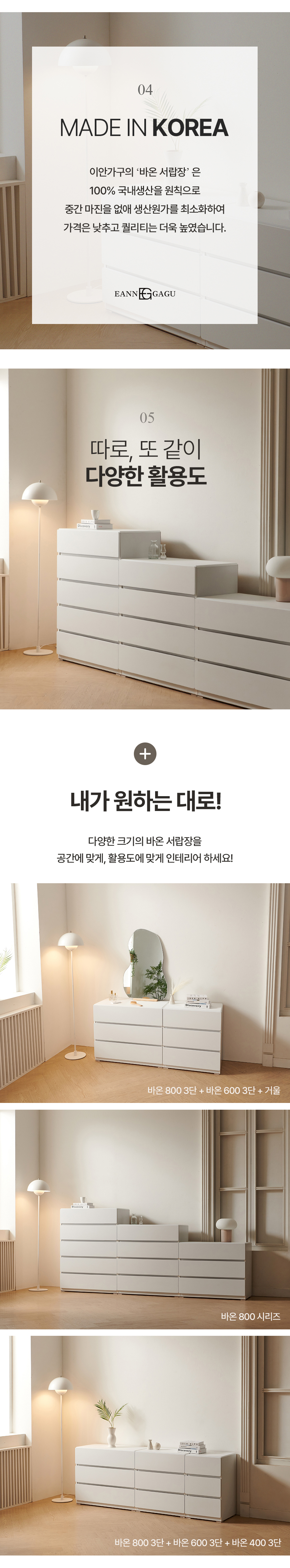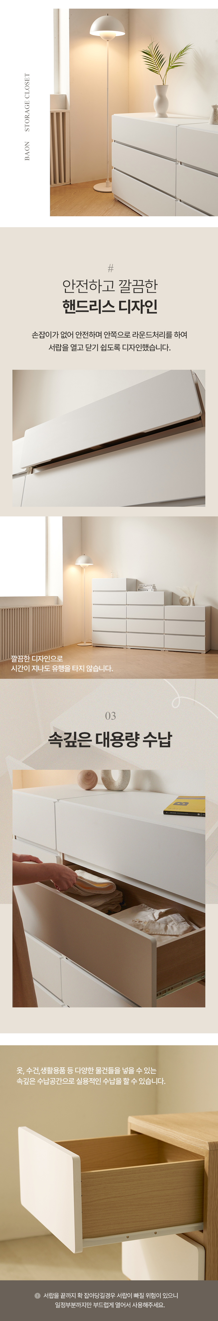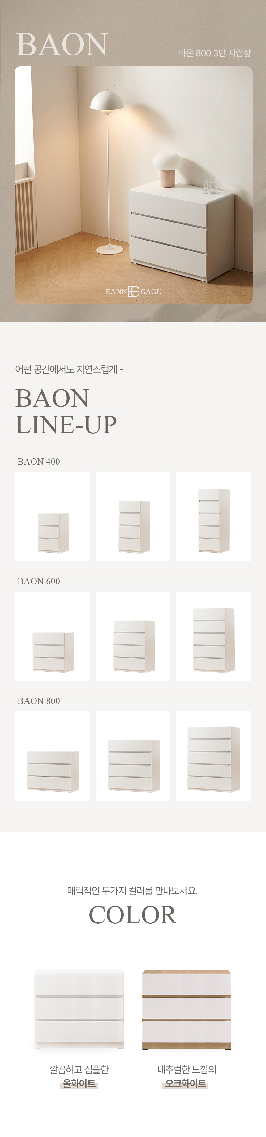 바온 3단 서랍장 800 수납장 라운드모서리