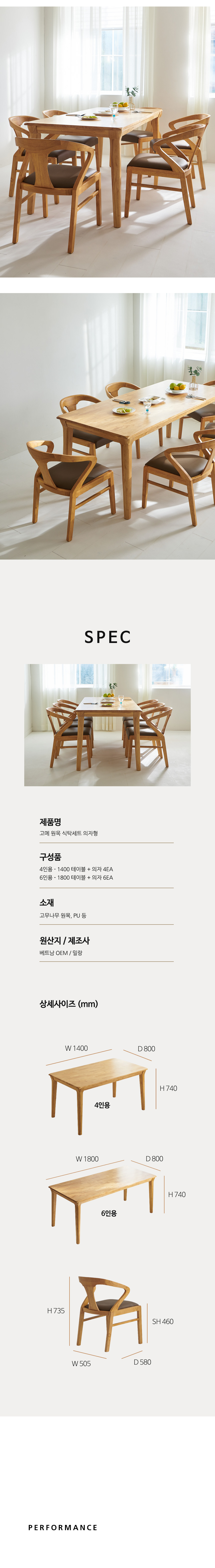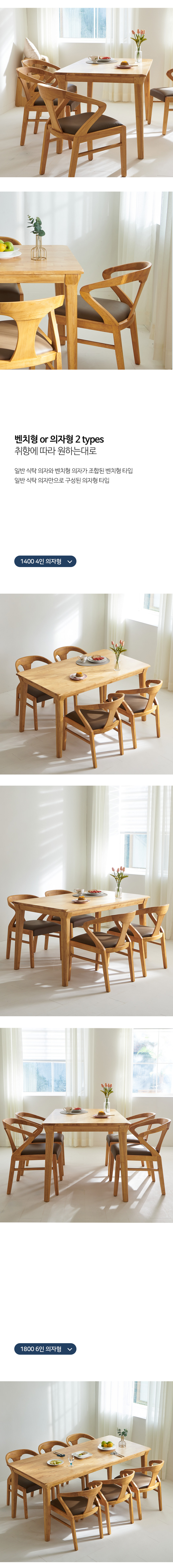 밀랑 고메 원목 1800 식탁세트 6인 의자형