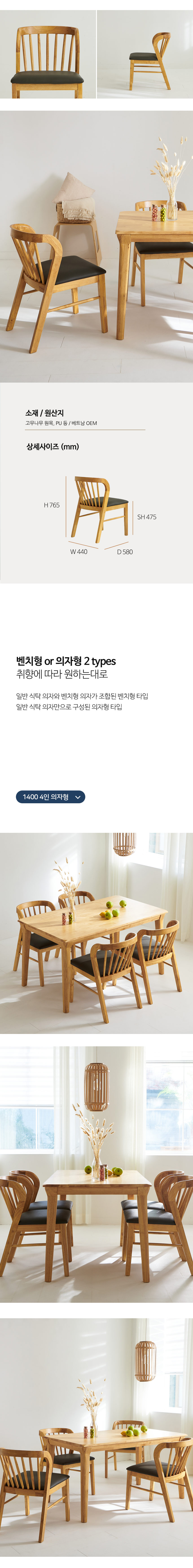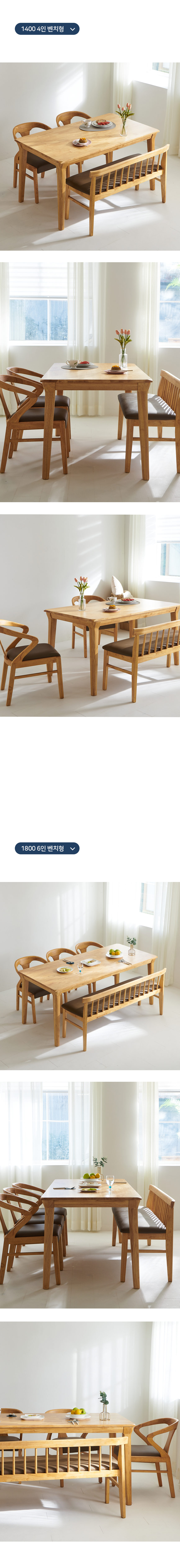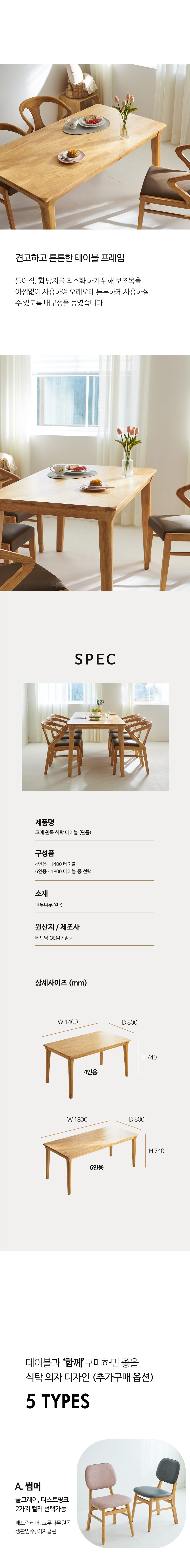 밀랑 순수 원목 4인 6인 식탁 테이블 1400 1800 2sizes