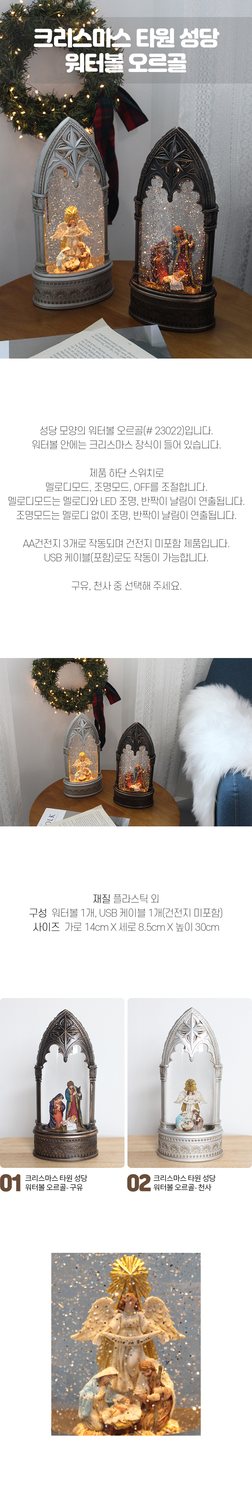 크리스마스 타원 성당 워터볼 오르골 (2type)