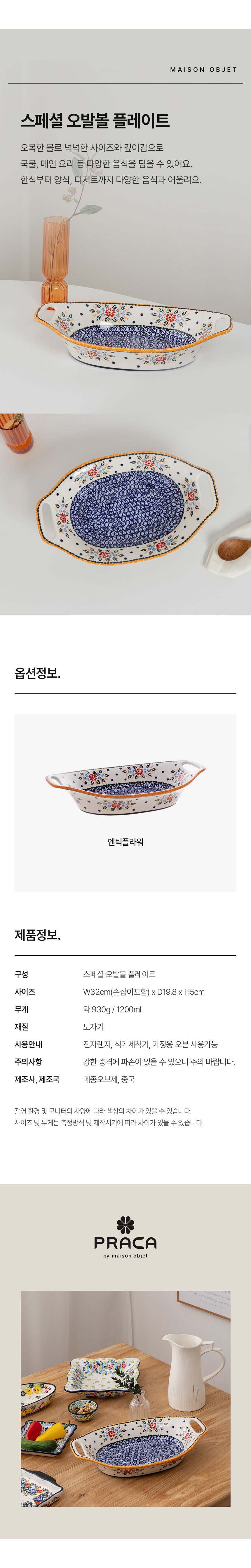 프라카 폴란드풍 도자기 스페셜 오발 볼 플레이트