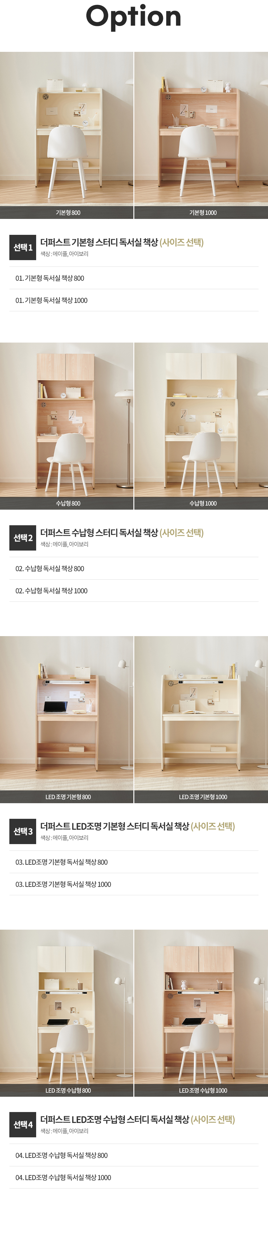 더퍼스트 스터디 독서실 책상 800 1000 (기본형/수납형/LED조명)