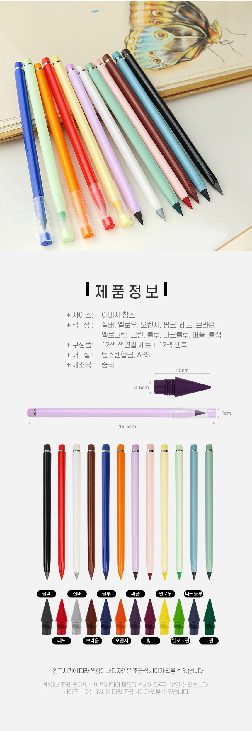 무제한 색연필 12색 세트 + 리필 12색