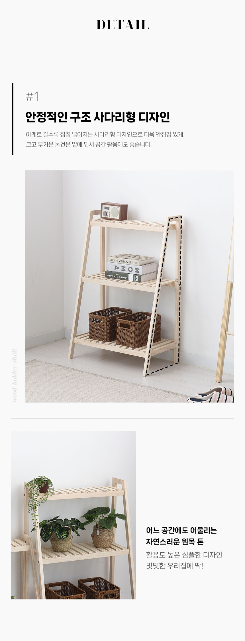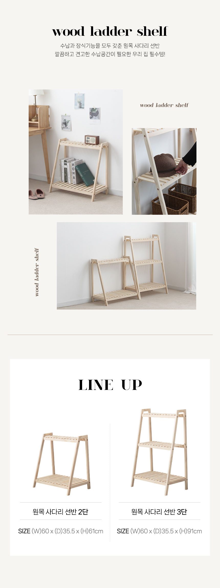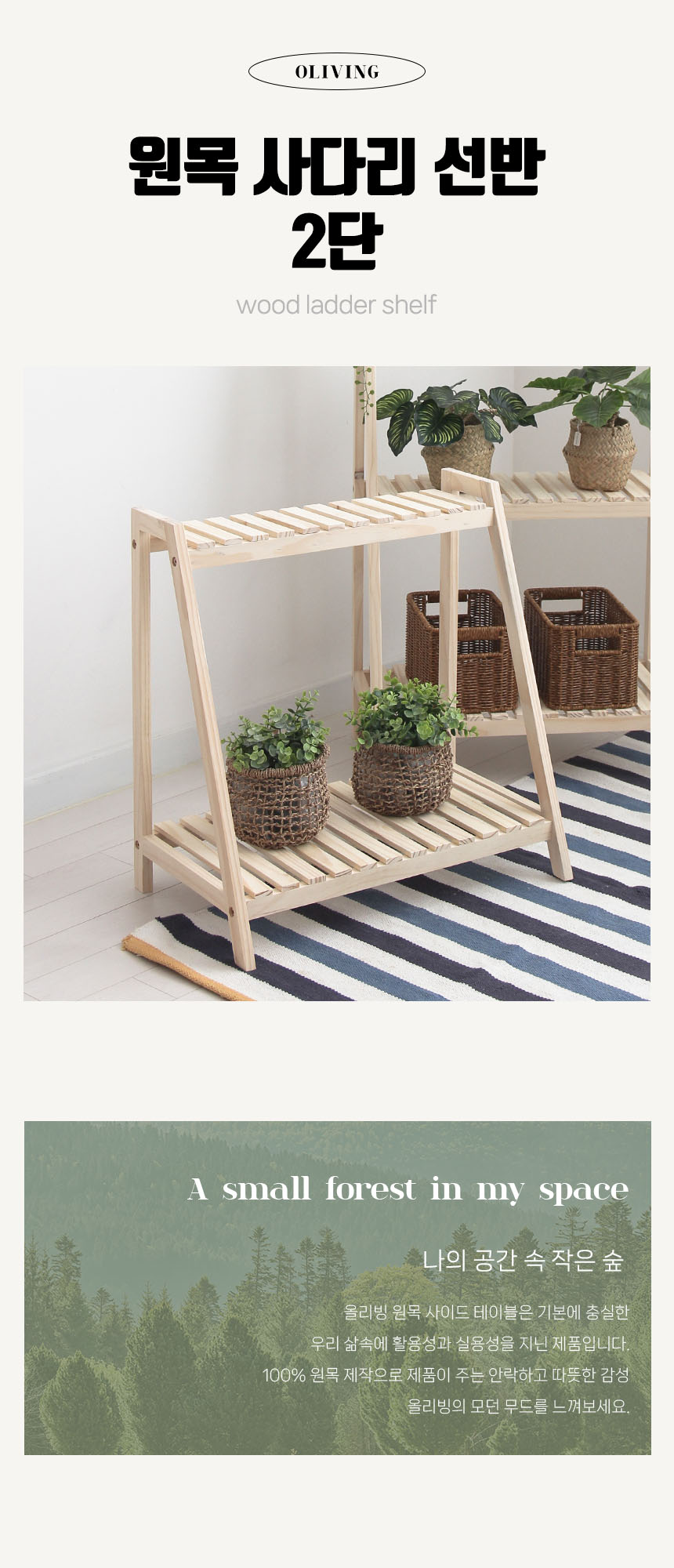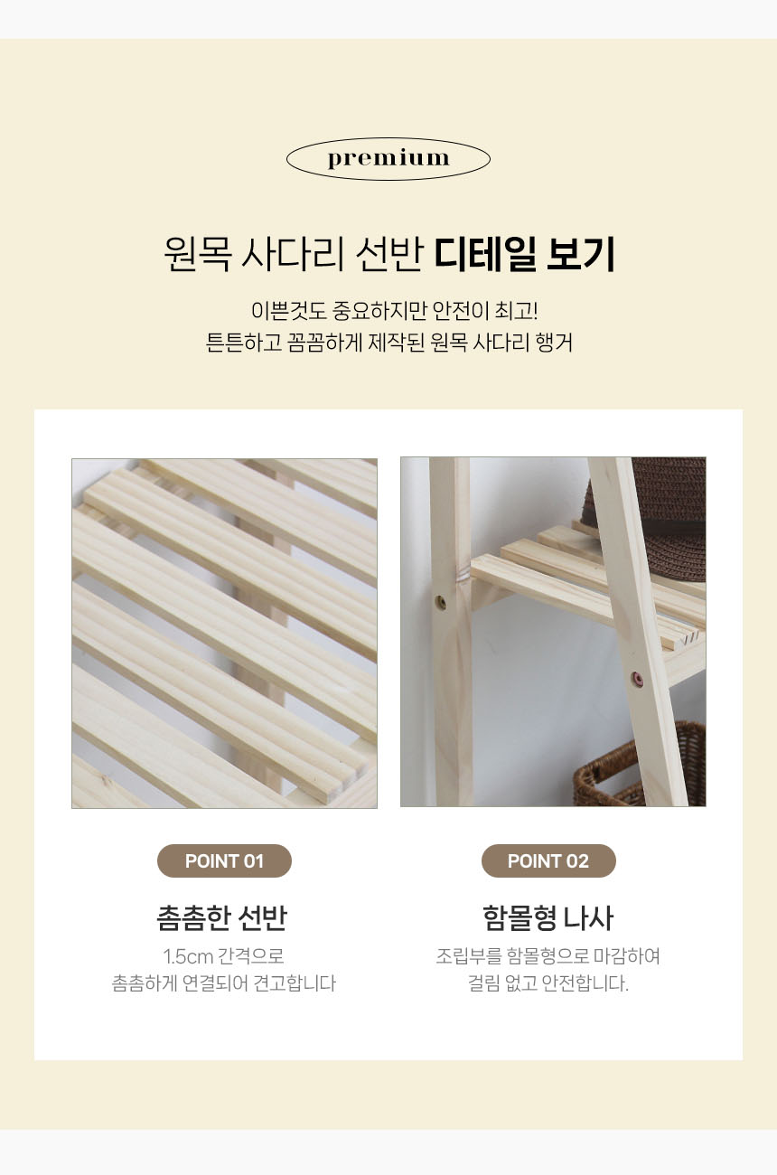 원목 사다리 선반 2단