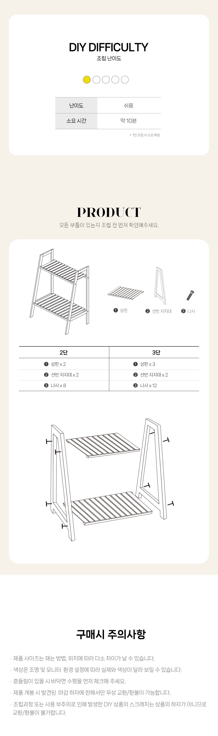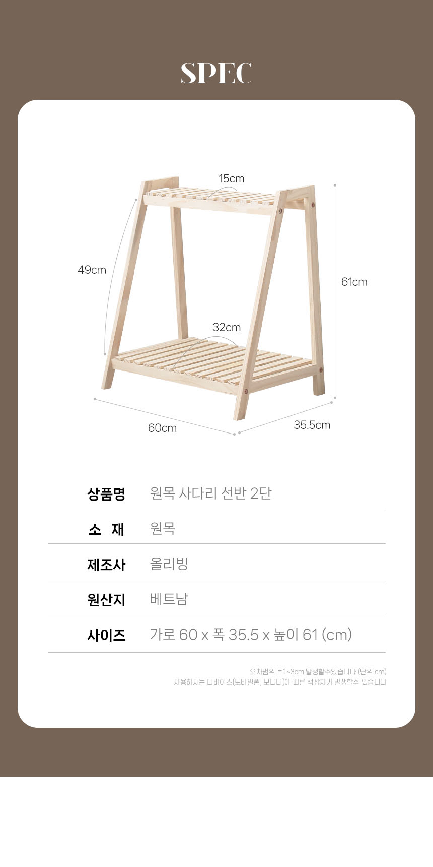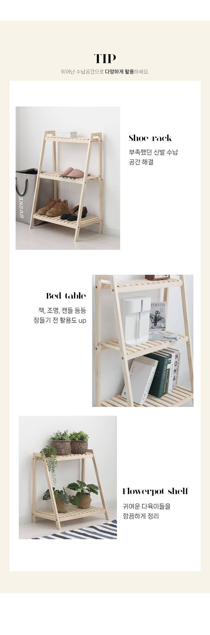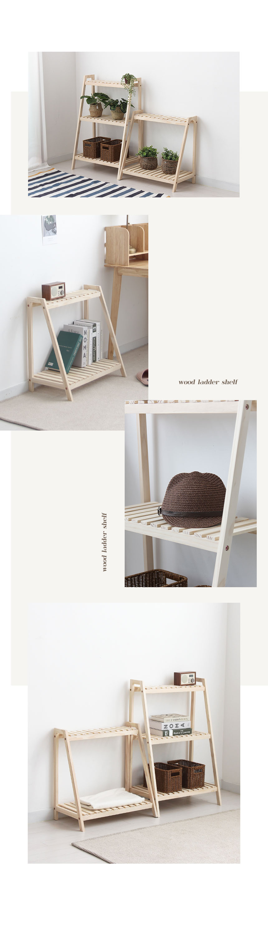 원목 사다리 선반 2단