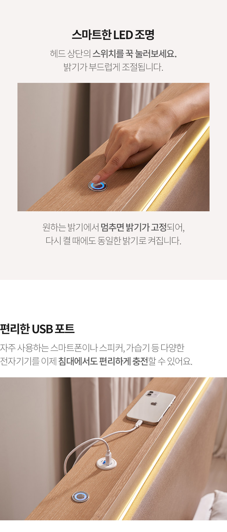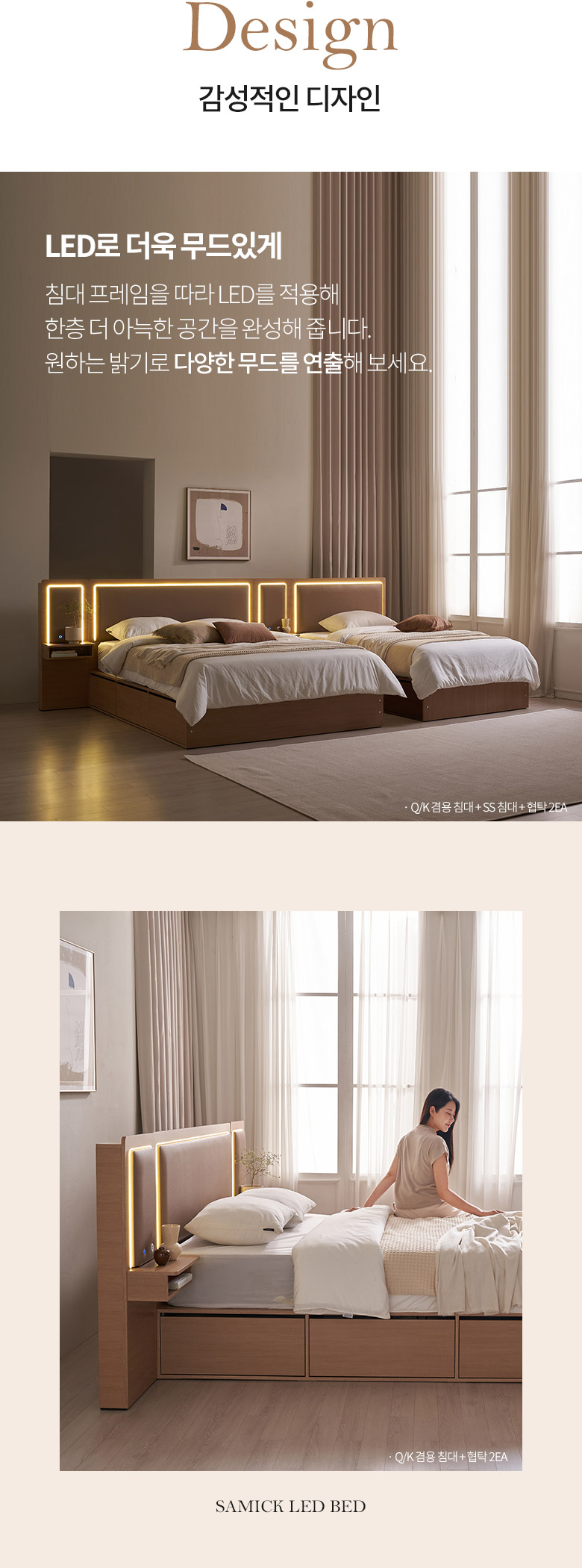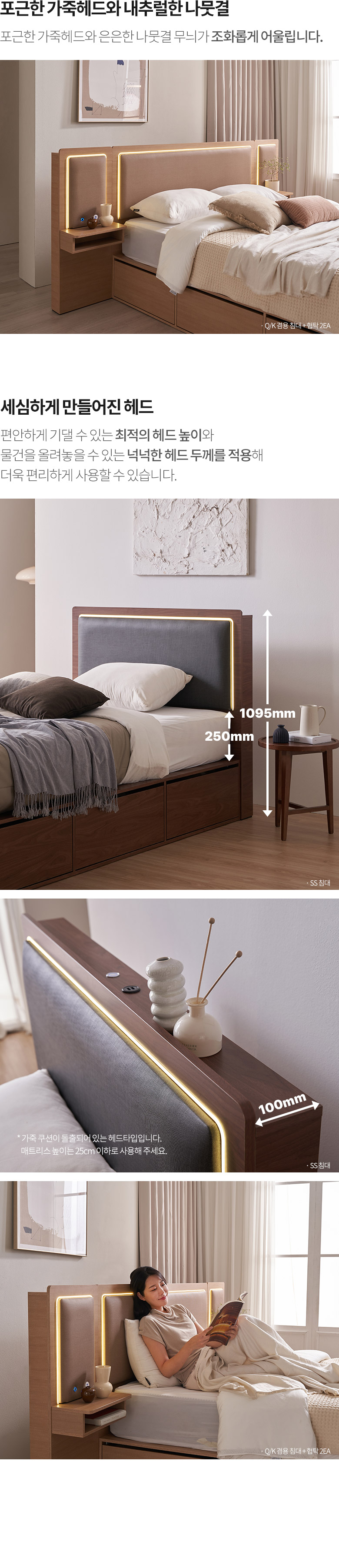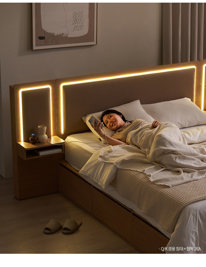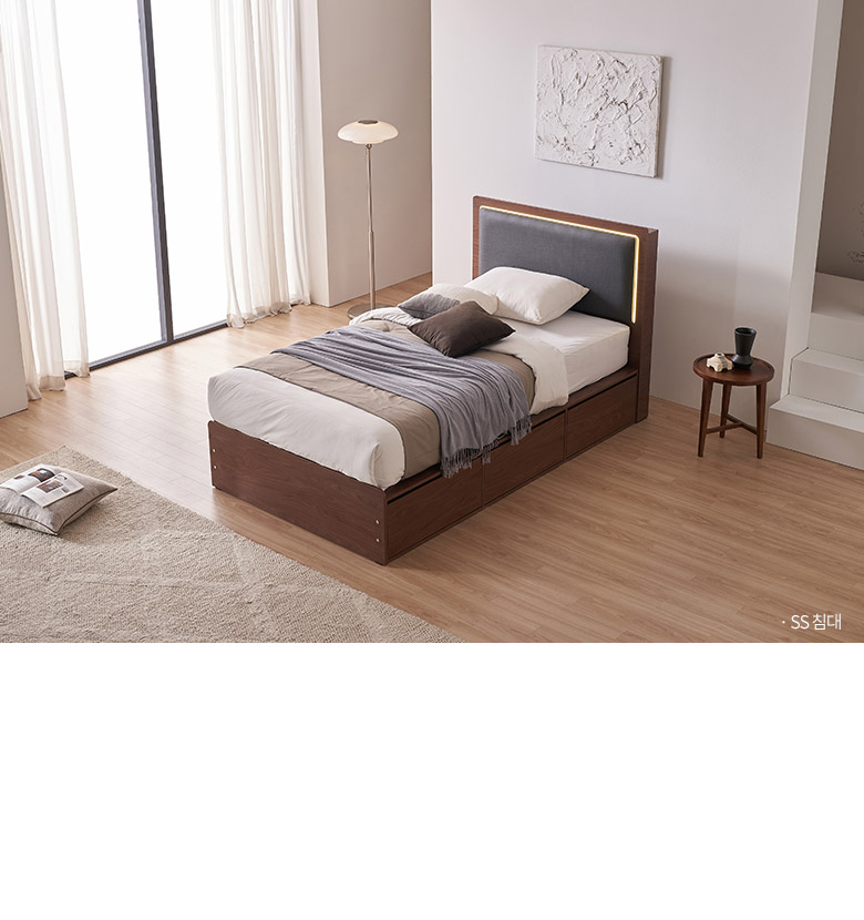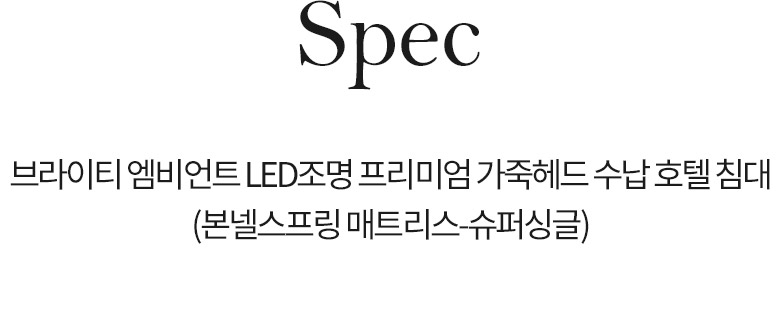 삼익가구 브라이티 엠비언트 LED조명 프리미엄 가죽헤드 수납 호텔 침대(본넬스프링 매트리스-슈퍼싱글)
