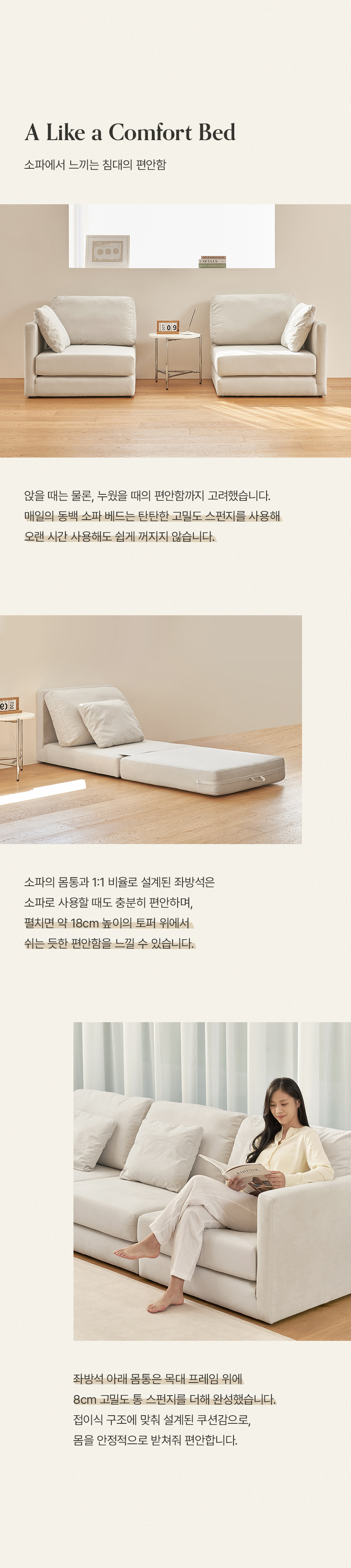 휴도 매일의 동백 800 아쿠아 패브릭 모듈형 1인 침대 소파베드