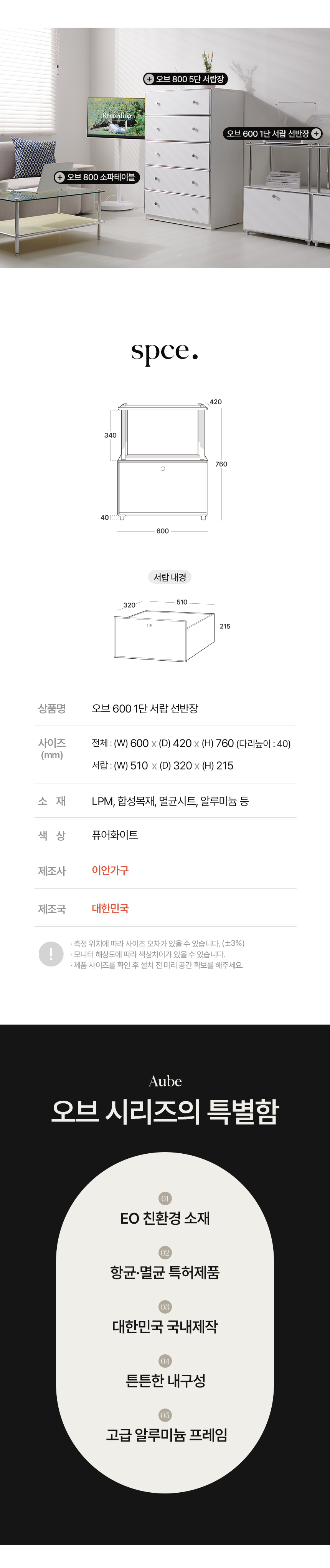 오브 모듈 1단 600 서랍장 국내생산 항균특허 선반 틈새 수납 콘솔