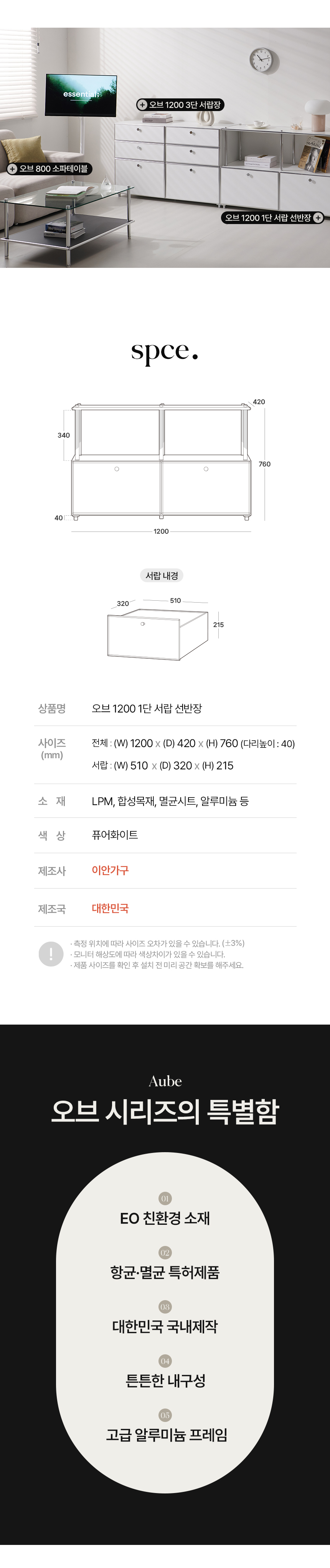 오브 모듈 1단 1200 서랍장 국내생산 항균특허 선반 틈새 수납 콘솔