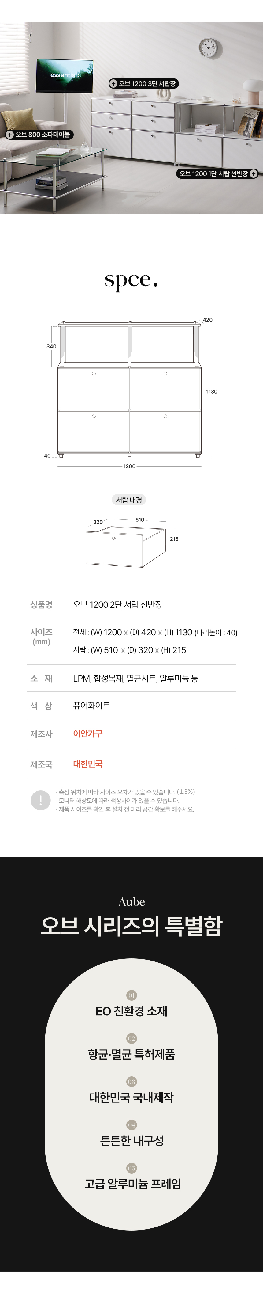 오브 모듈 2단 1200 서랍장 국내생산 항균특허 선반 틈새 수납 콘솔