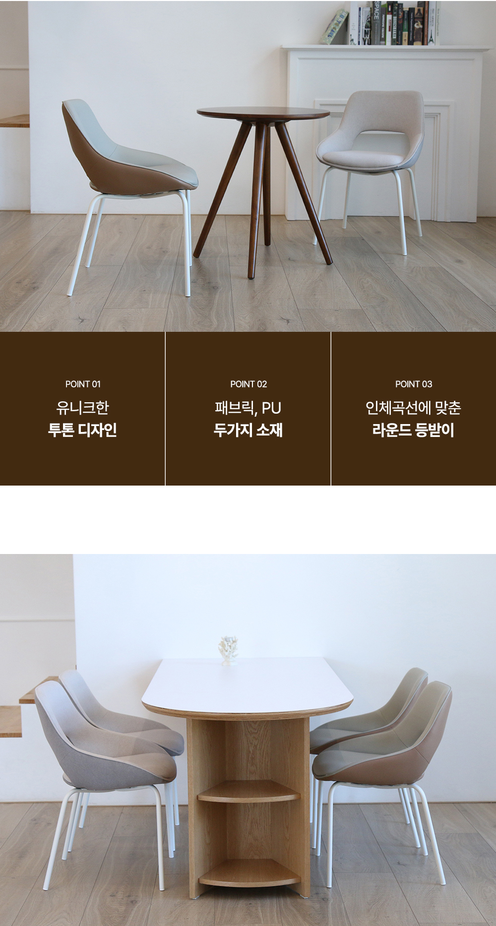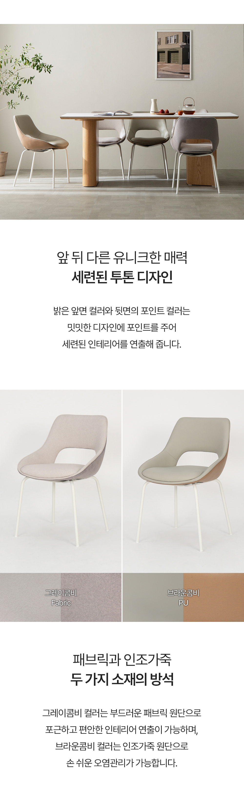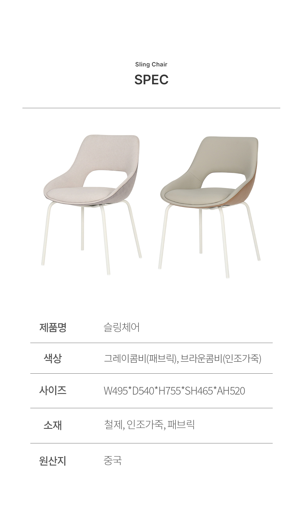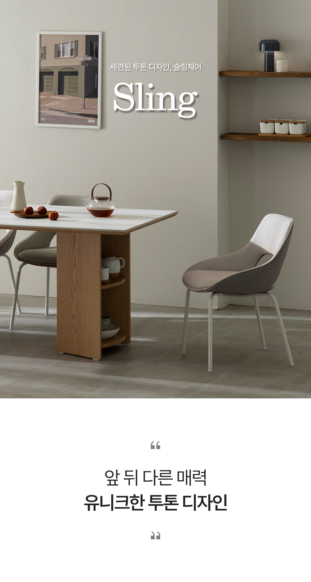 슬링체어 모던 인테리어 철제 가죽 패브릭 투톤 식탁의자 2colors