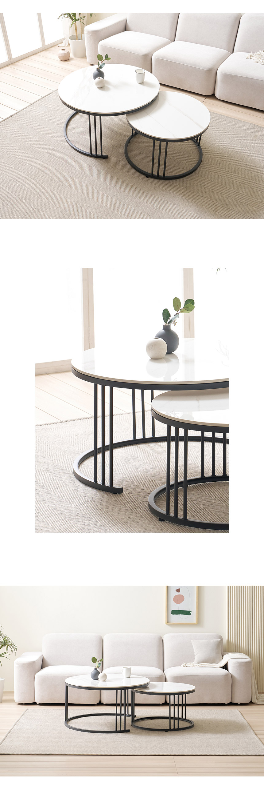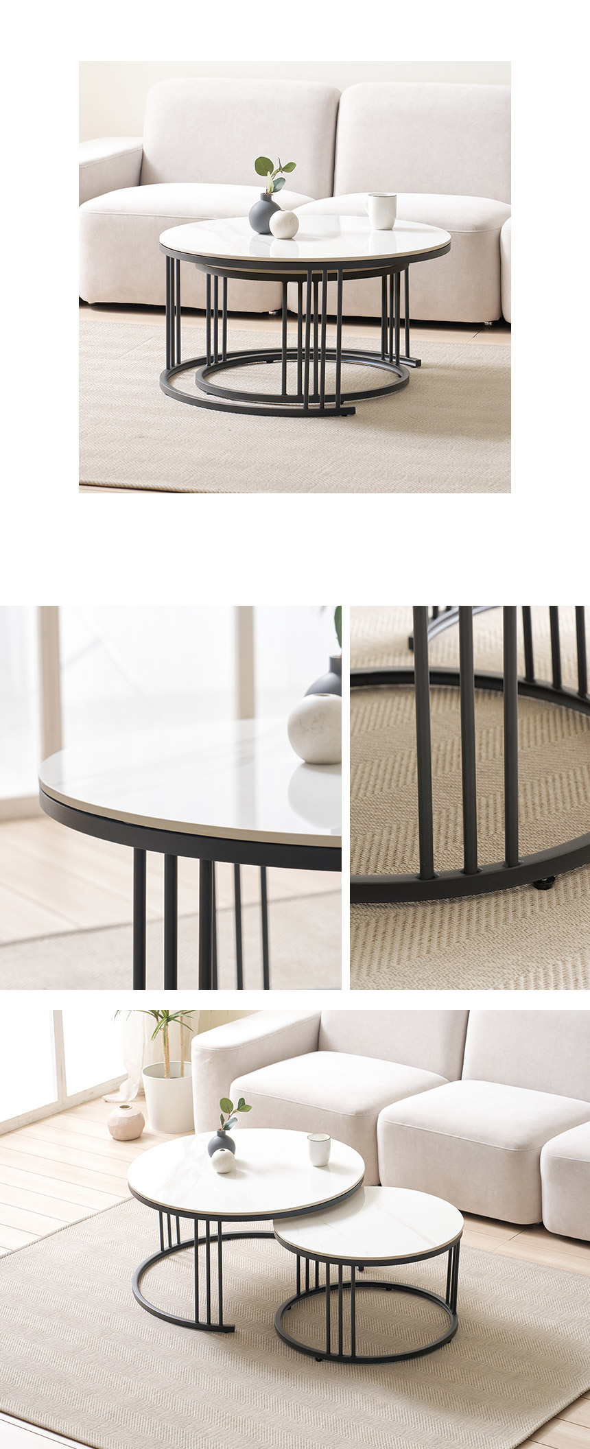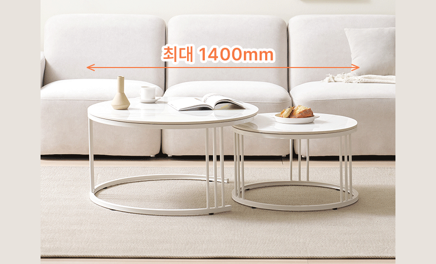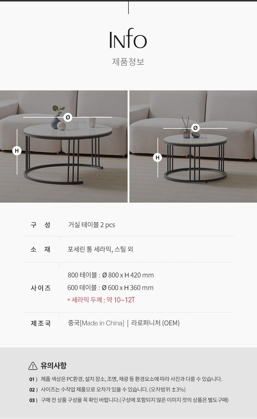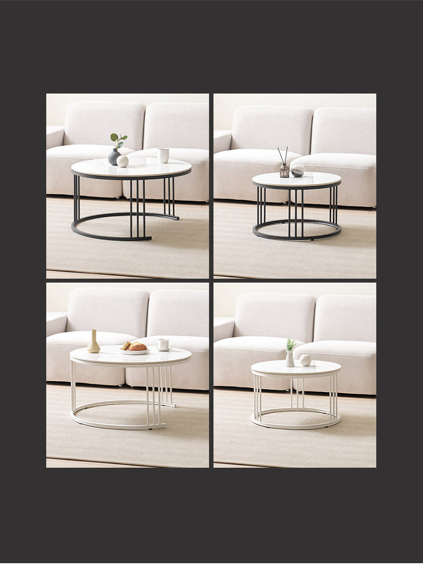 라로퍼니처 몽크 600+800 원형 2단 유광 세라믹 거실 테이블