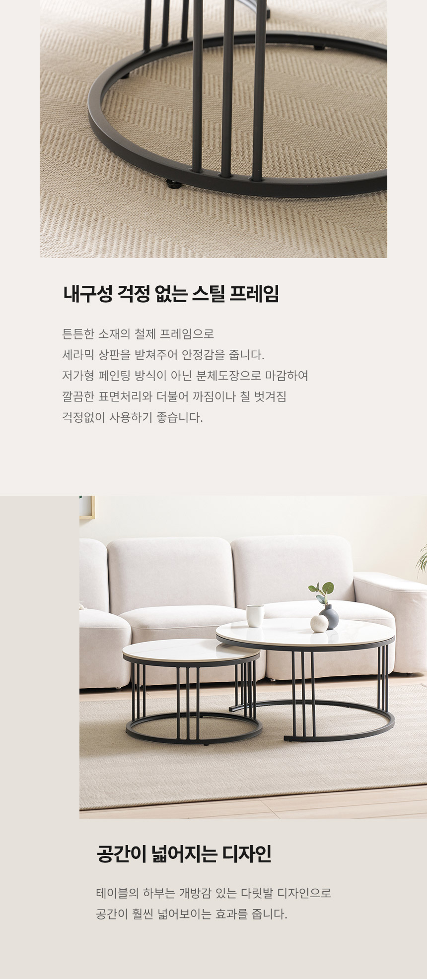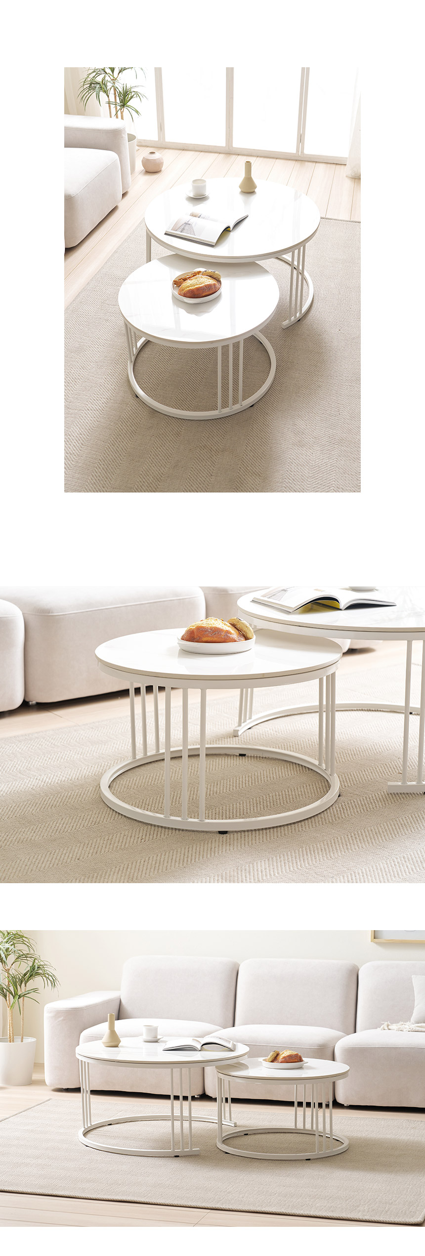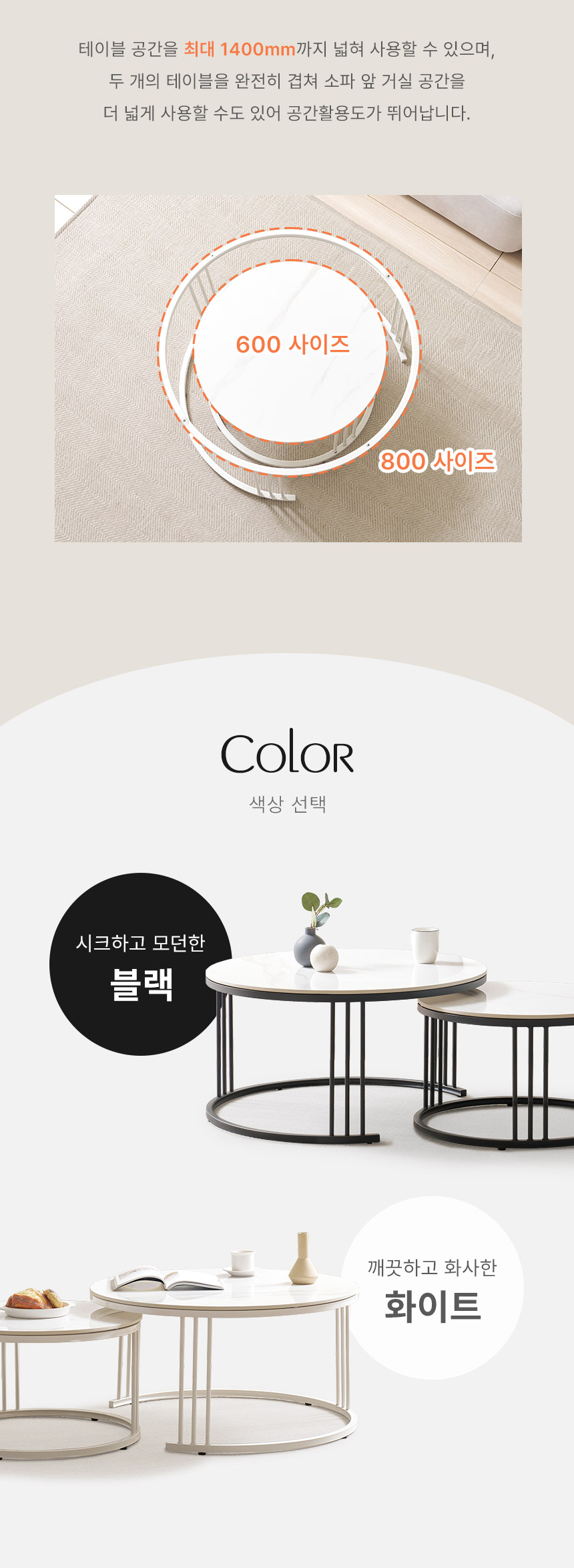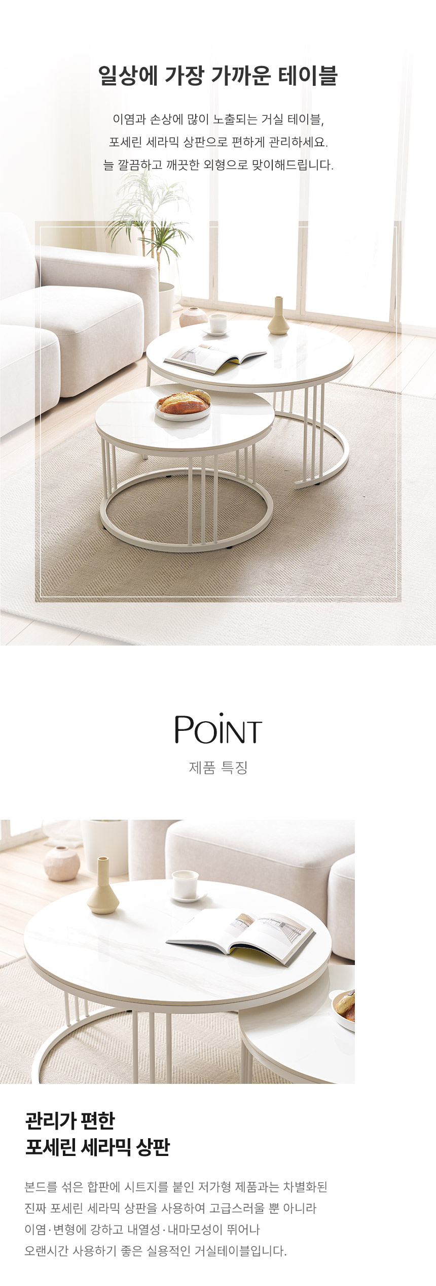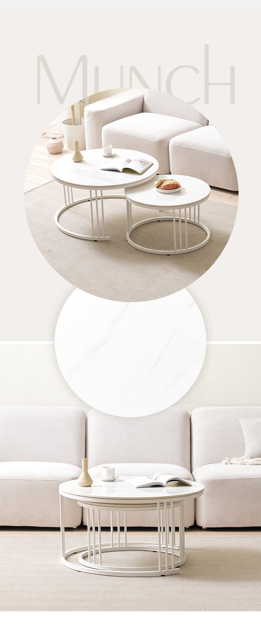 라로퍼니처 몽크 600+800 원형 2단 유광 세라믹 거실 테이블