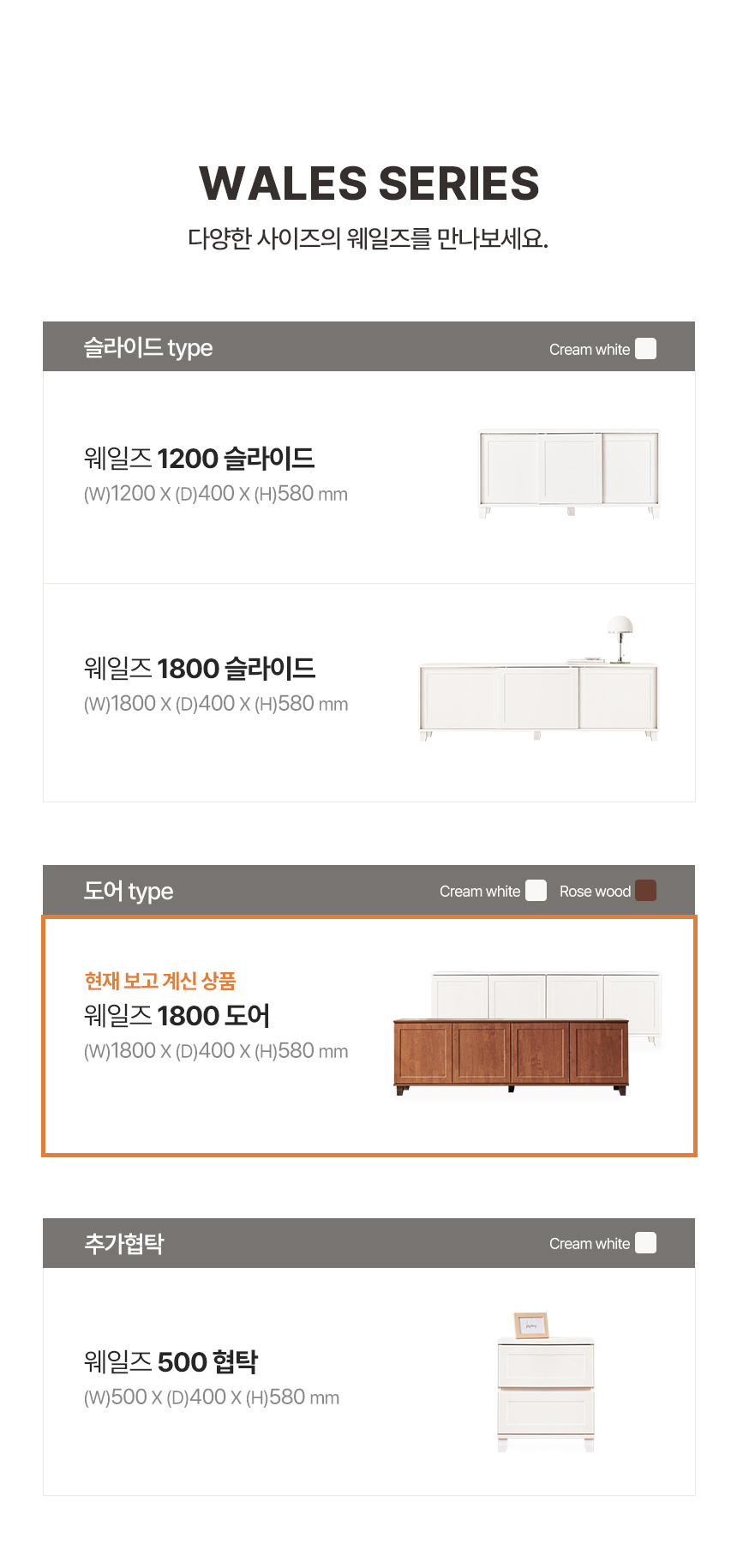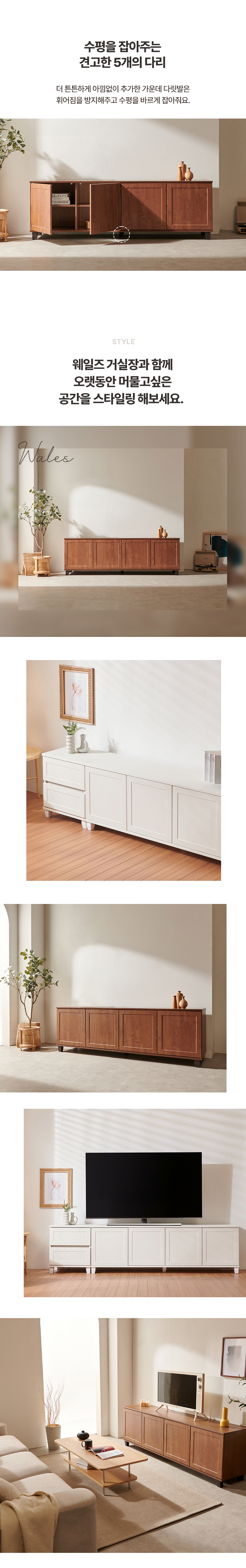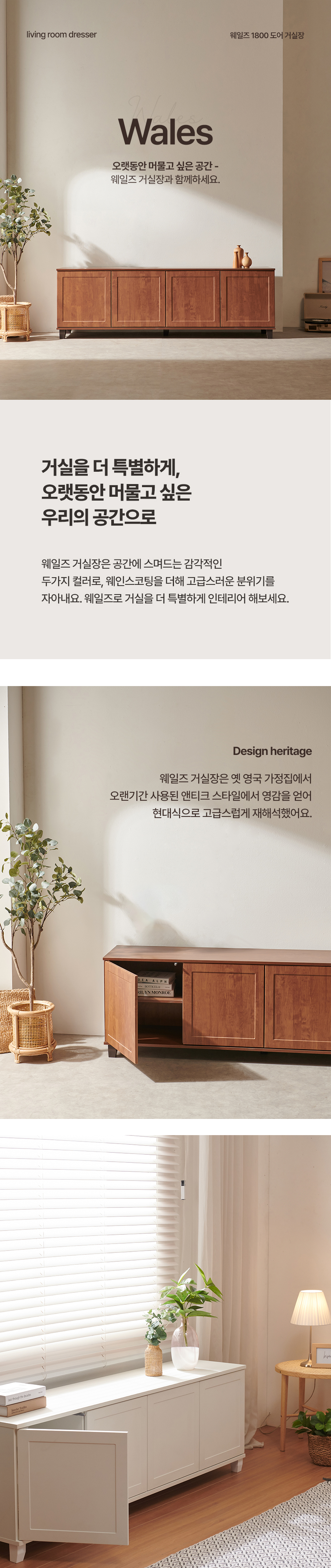 웨일즈 1800 높은거실장 도어형 크림화이트 티비다이 tv다이 오크거실장