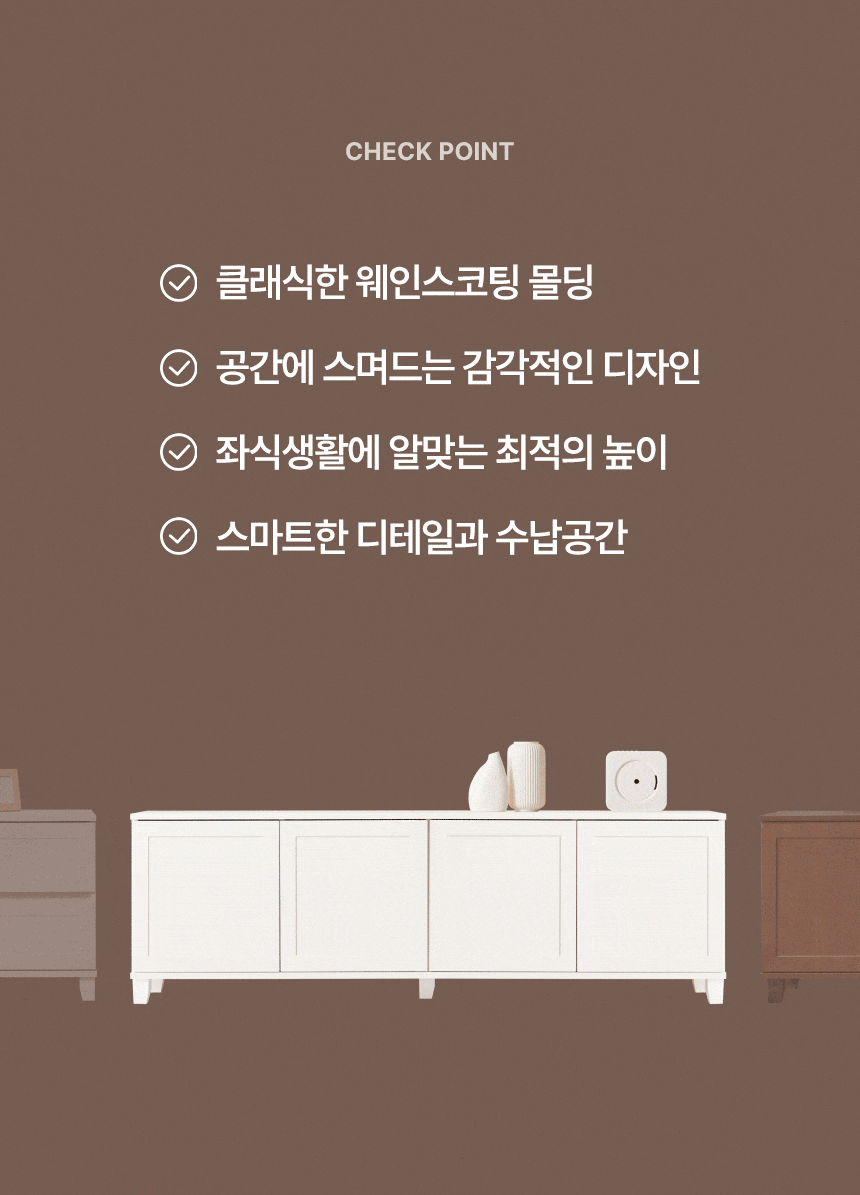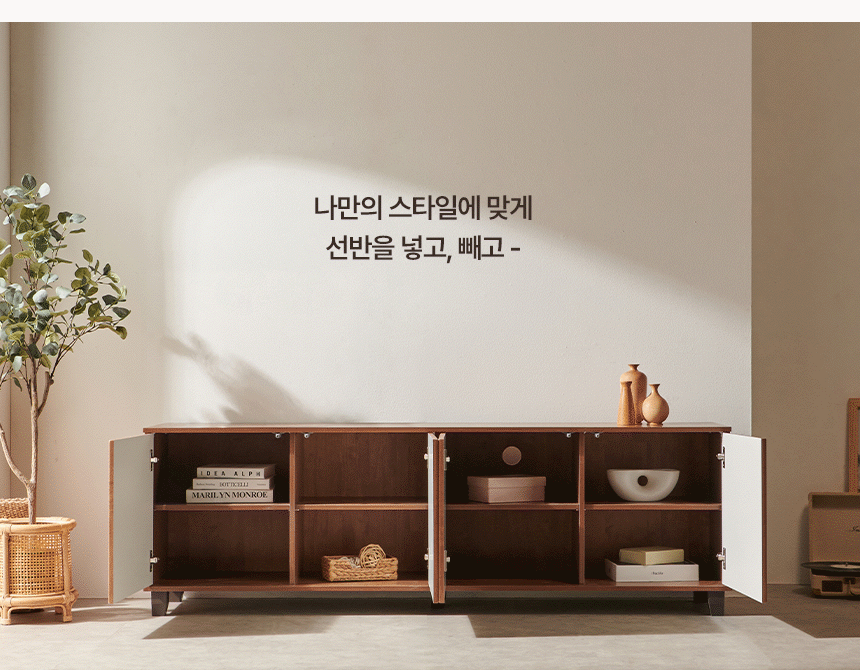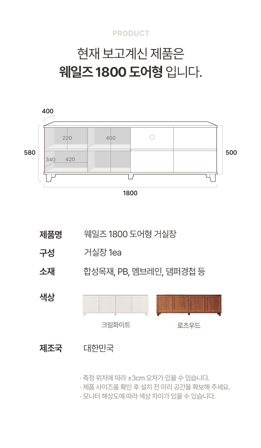웨일즈 1800 높은거실장 도어형 크림화이트 티비다이 tv다이 오크거실장