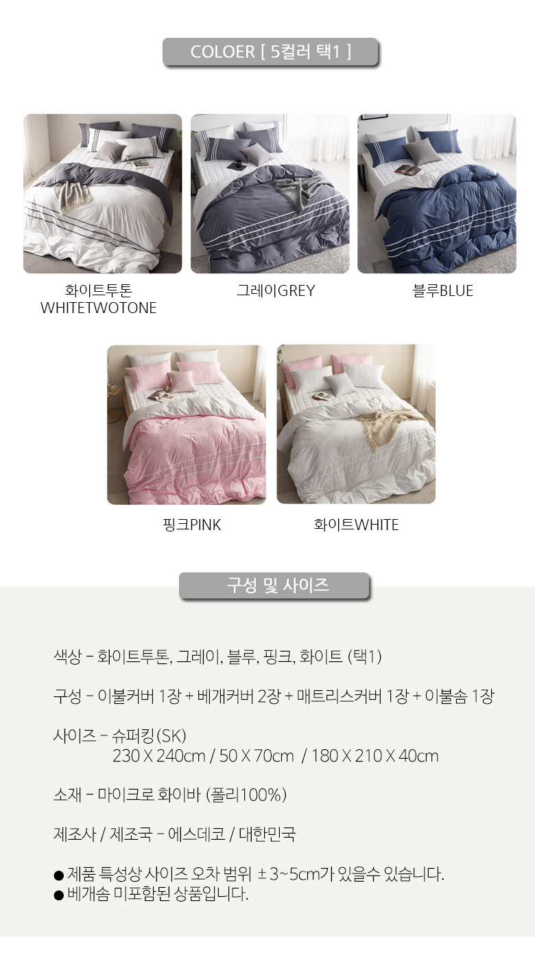 LEO마이크로100프로 진드기방지 이불매카솜세트SK화이트투톤