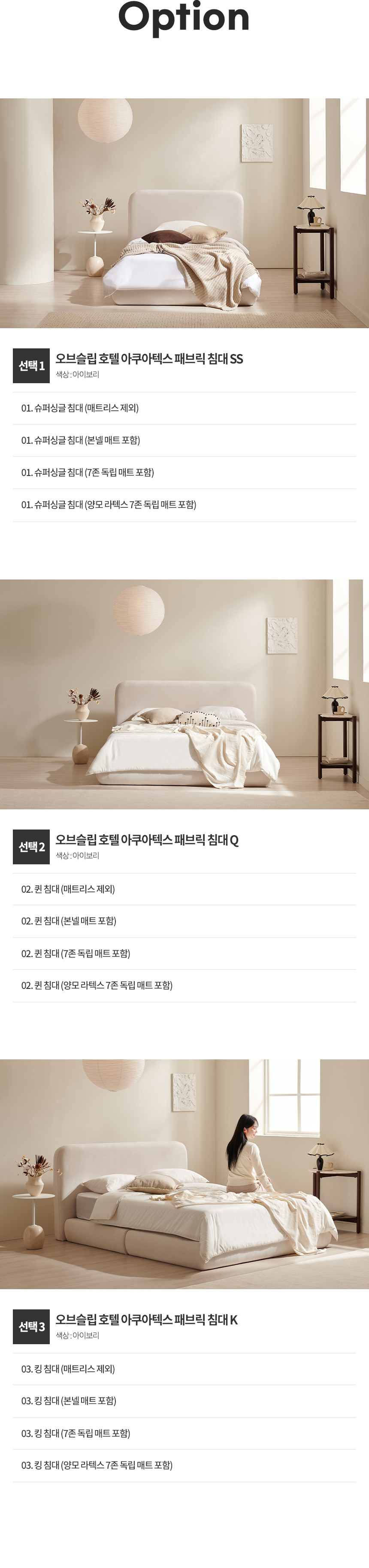 오브슬립 호텔 아쿠아텍스 패브릭 침대 SS Q K