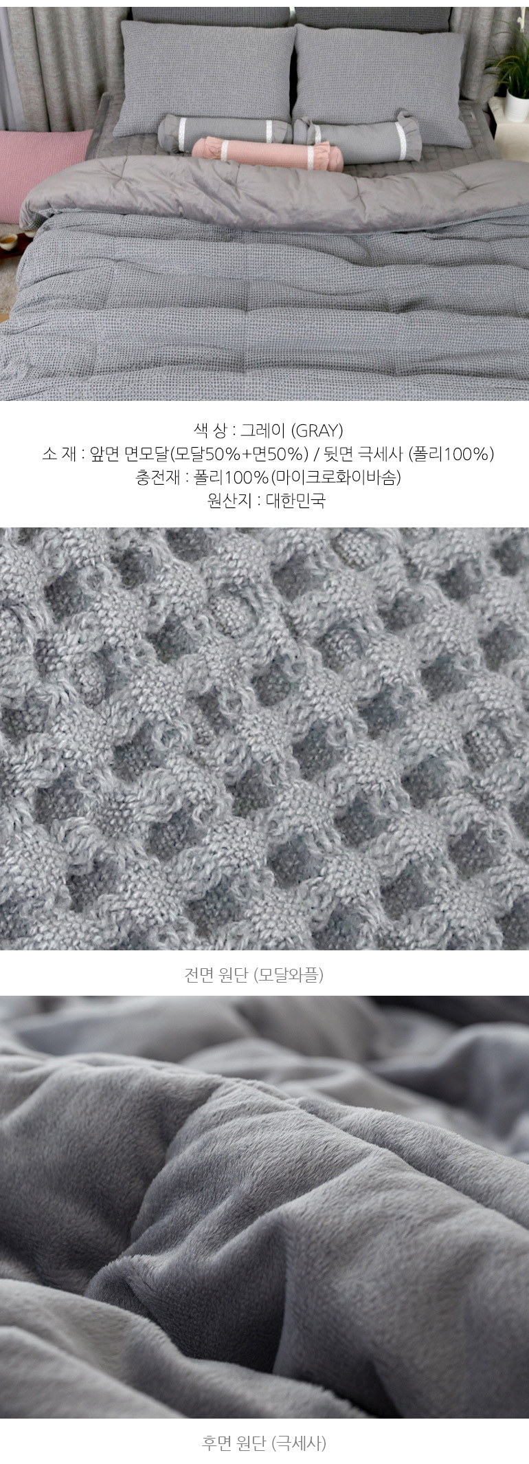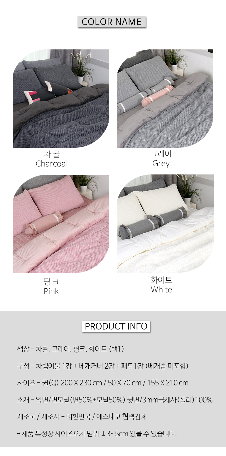 모달와플 극세사 포근한 겨울차렵이불패드세트Q 4컬러