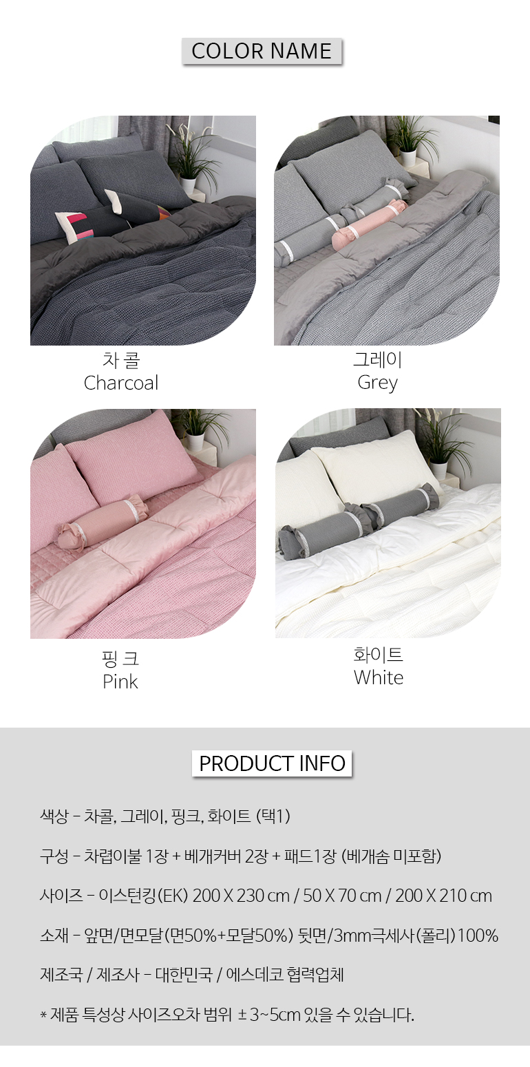 모달와플 극세사 포근한 겨울차렵이불패드세트EK 차콜