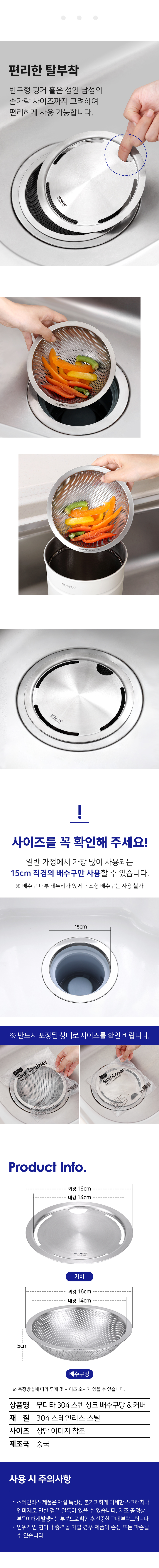 [특가~3/23AM10]리본제이 무디타 304 스텐 배수구망 거름망 + 커버 세트 / 탈수기호환 배수구망 고급형 커버세트