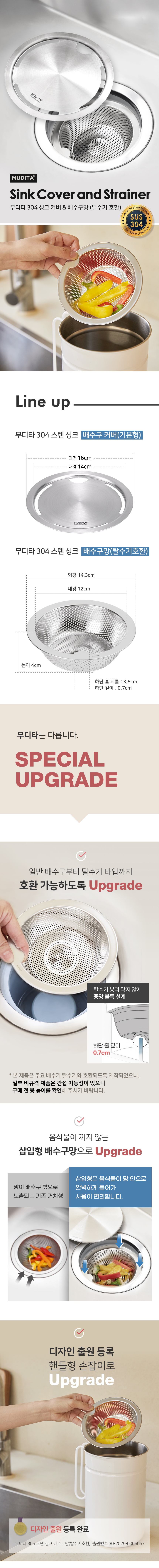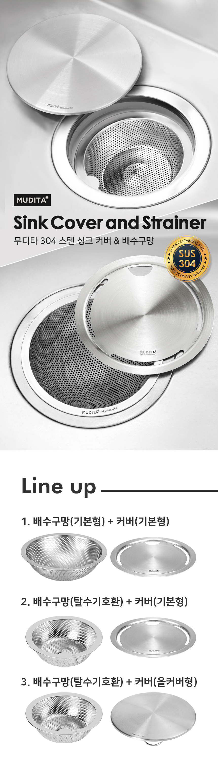 리본제이 무디타 304 스텐 배수구망 거름망 + 커버 세트 / 탈수기호환 배수구망 고급형 커버세트