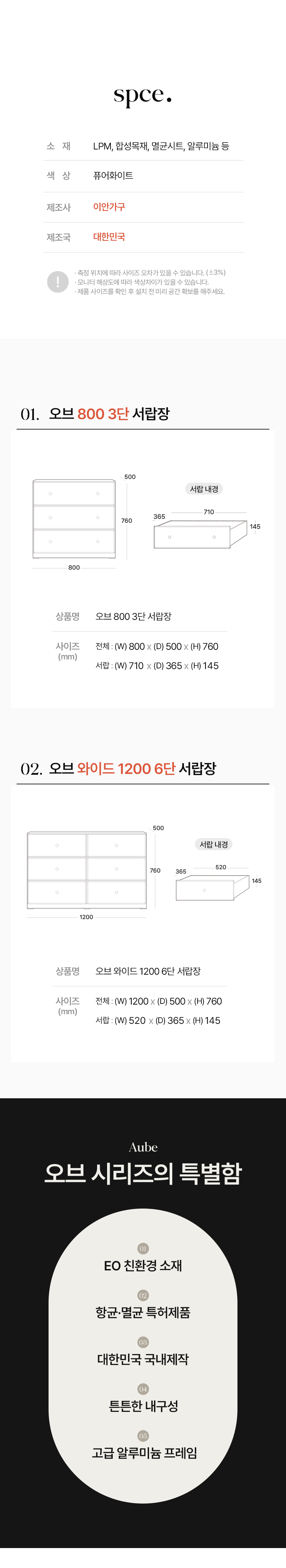 오브 라운드모서리 3단 800 와이드 서랍장1200 시리즈 PK036
