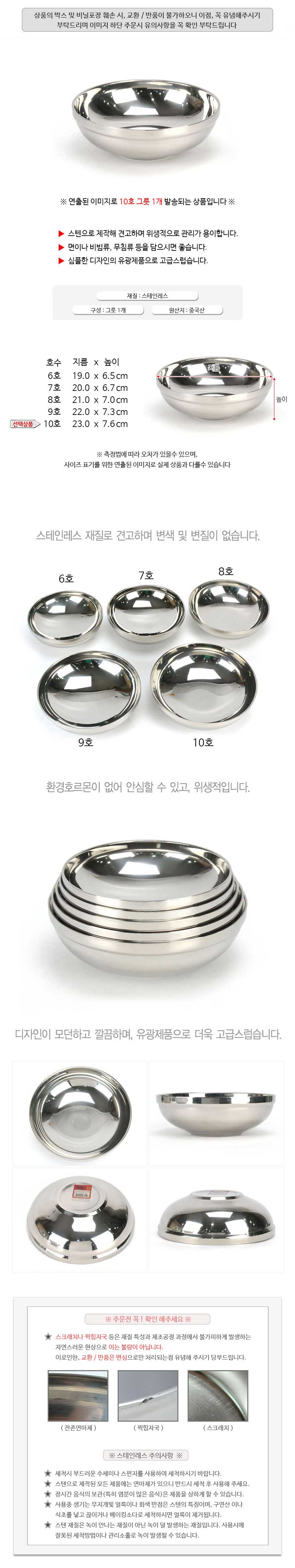상품명:이중 스텐 비빔밥 냉면 그릇 냉면기 23x7.6cm 10호