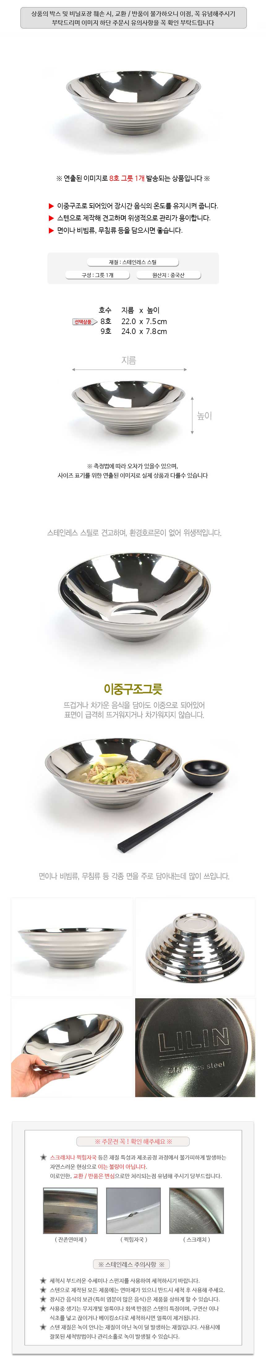이중 스텐 비빔밥 쌀국수 냉면 그릇 냉면기 22cm 8호