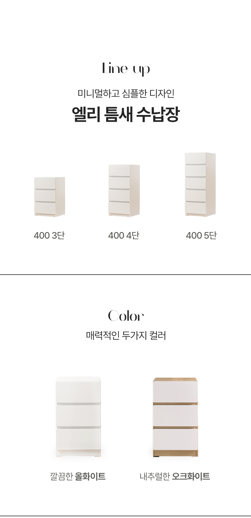 엘리 400 틈새서랍장 라운드모서리 시리즈(3단/4단/5단)