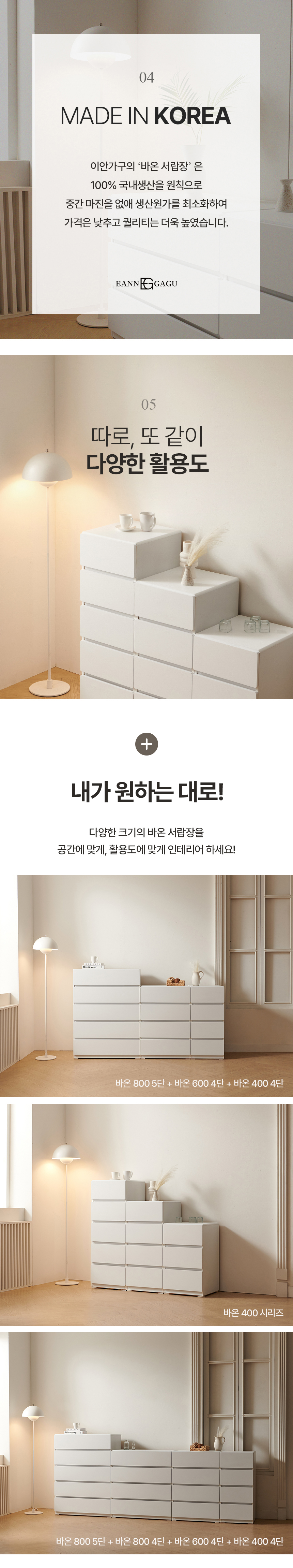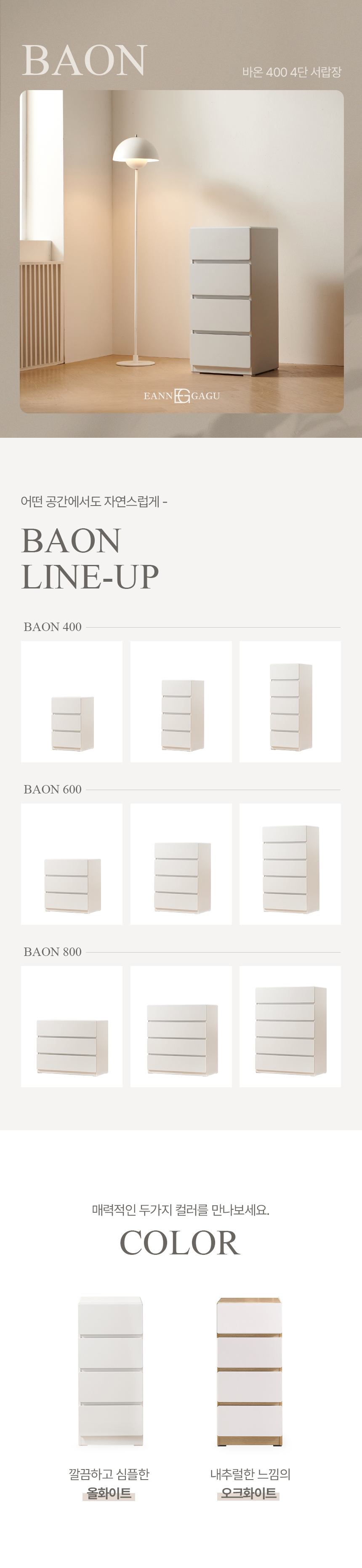 바온 4단 서랍장 400 틈새서랍 수납장 라운드모서리