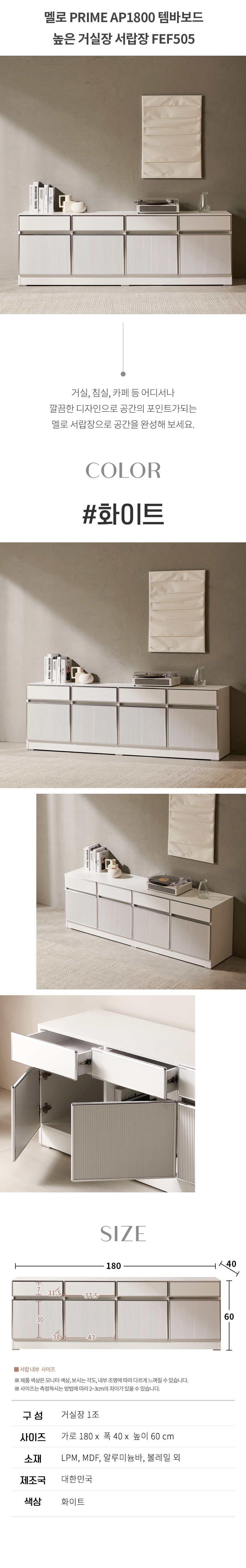 멜로 PRIME AP1800 템바보드 높은 거실장 서랍장 FEF505C