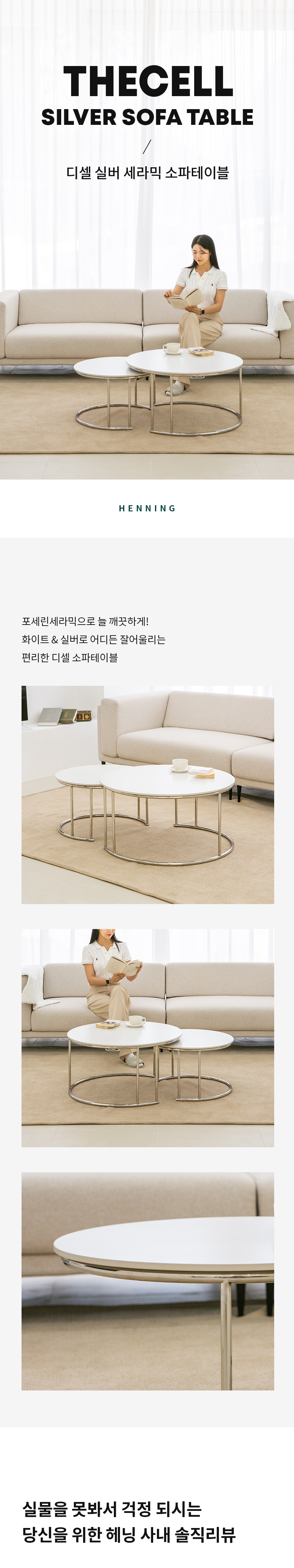 디셀 실버 세라믹 원형 소파테이블 2세트