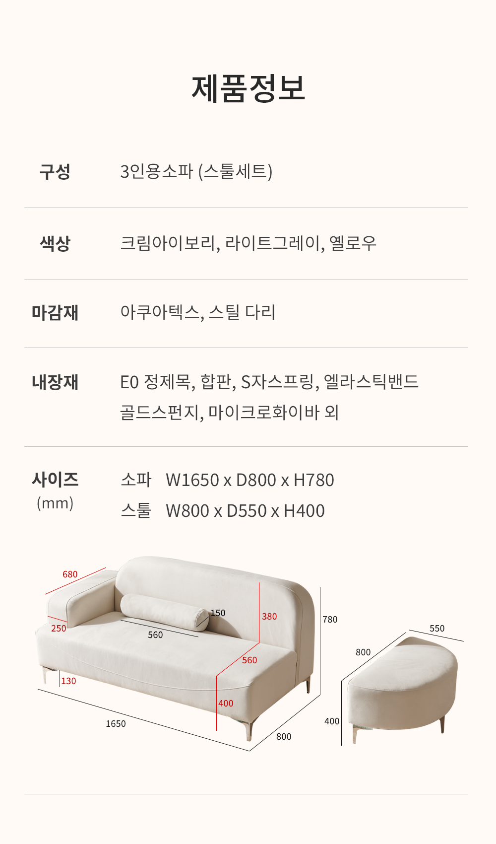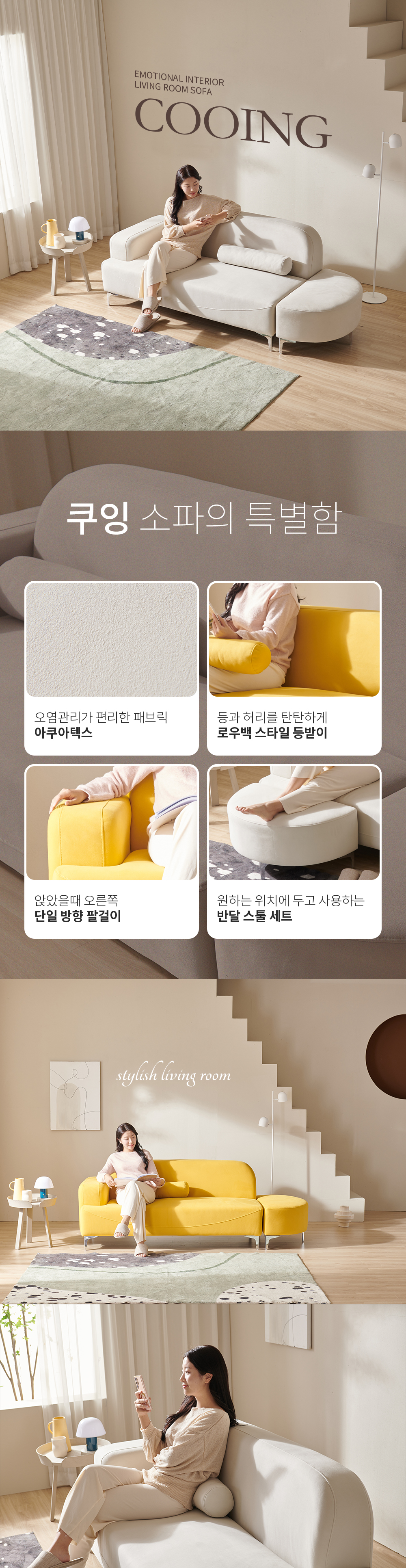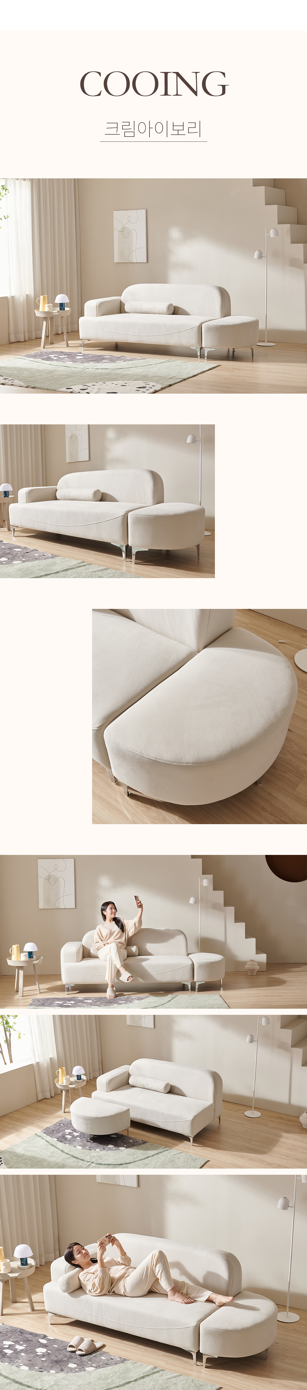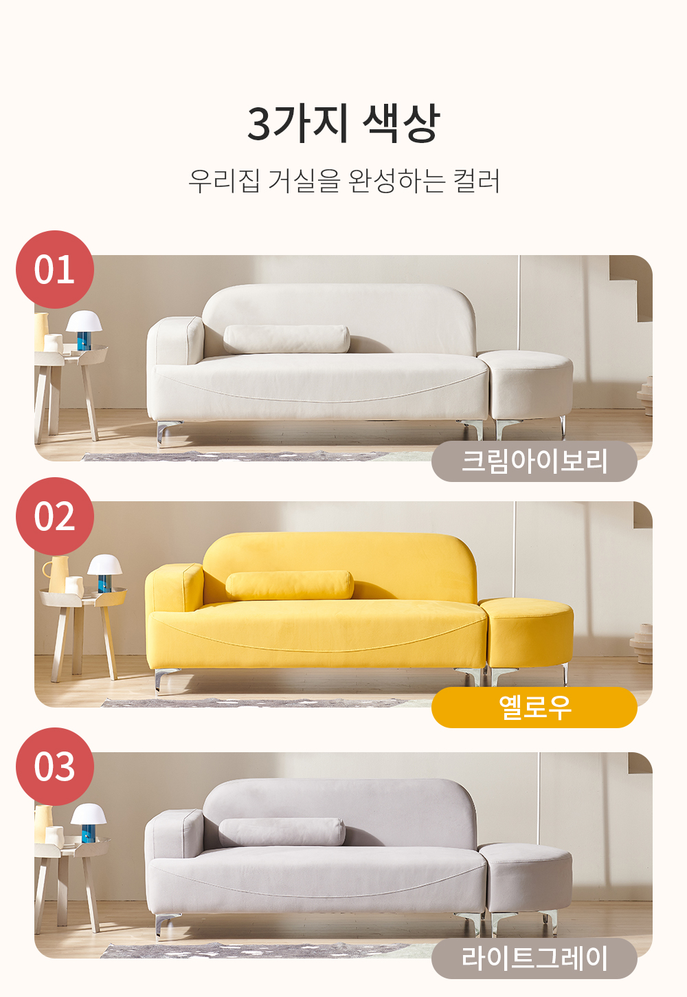 우아미가구 쿠잉 3인용 아쿠아텍스 소파+스툴세트 3color