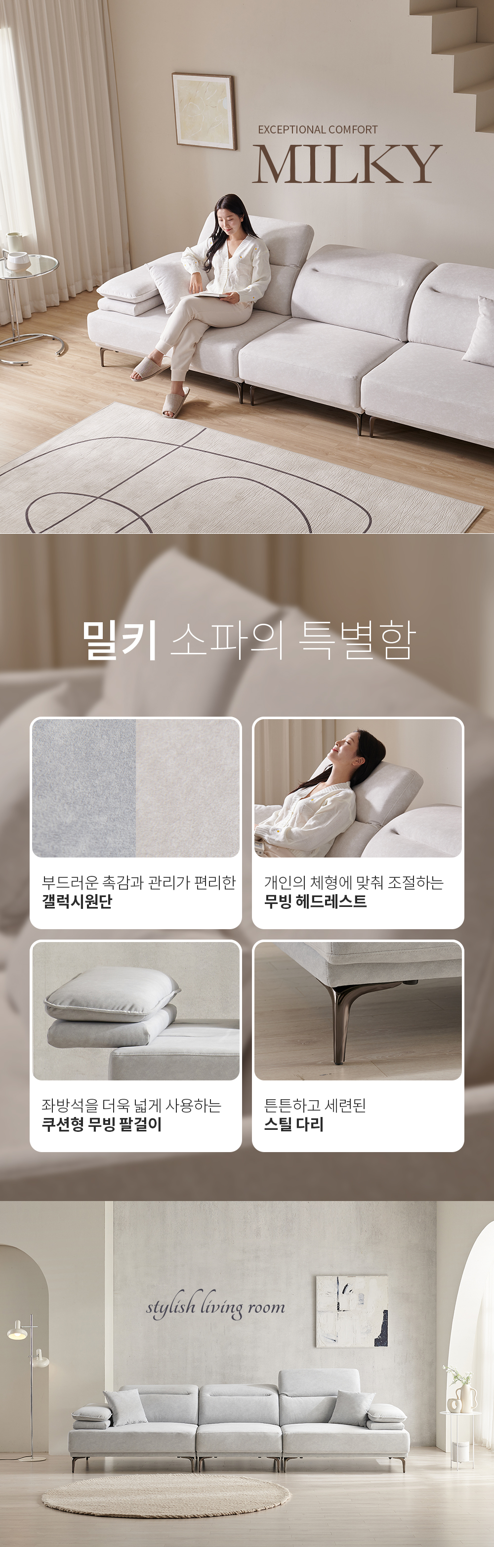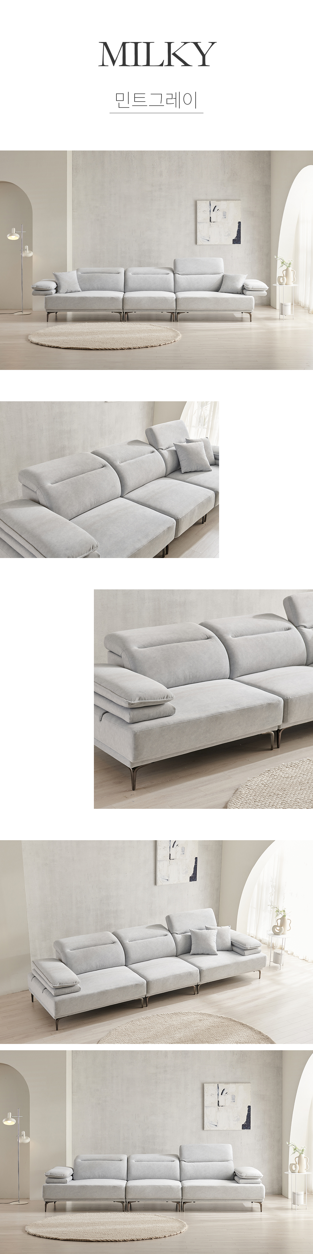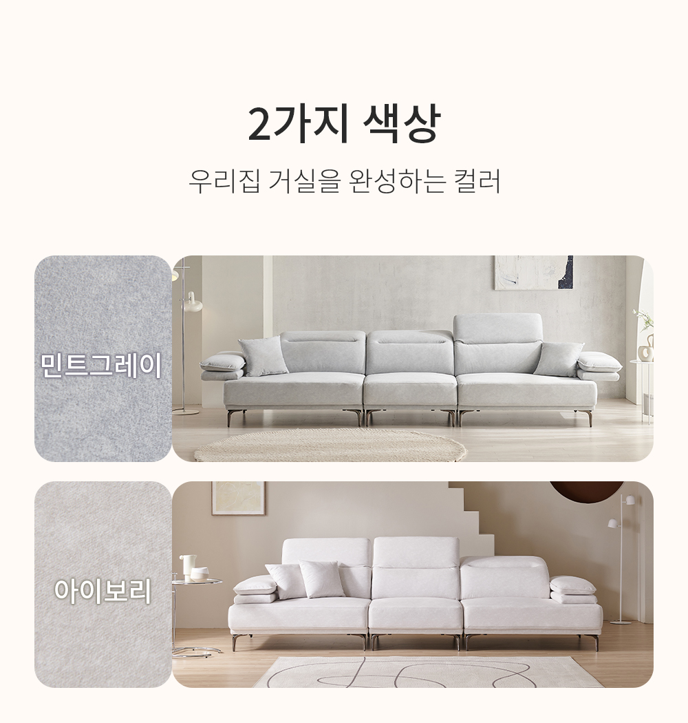 우아미가구 밀키 5인 무빙헤드 갤럭시 패브릭 소파 2color
