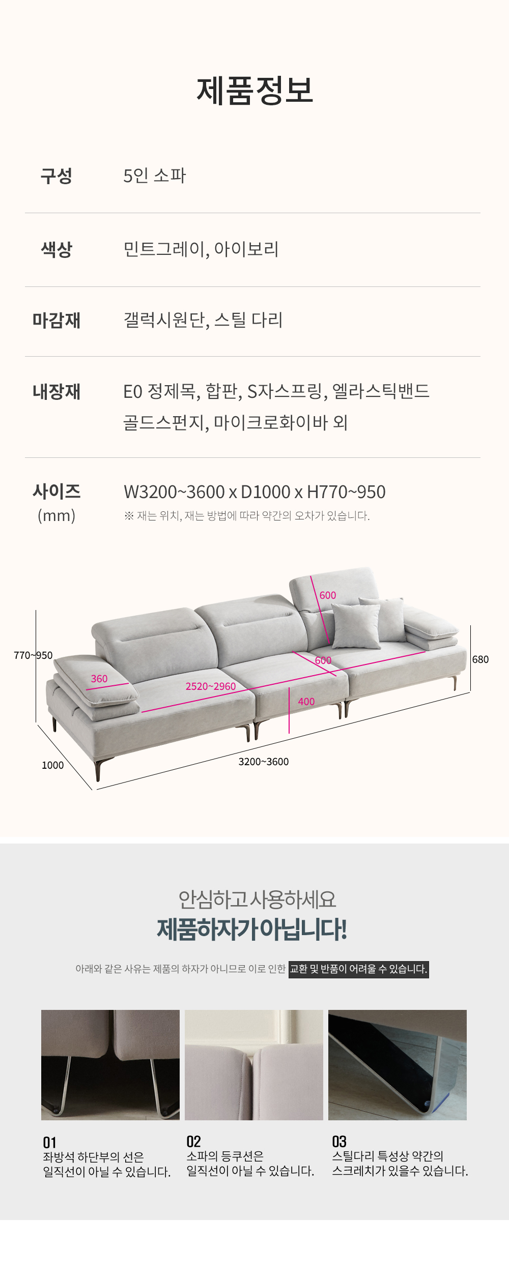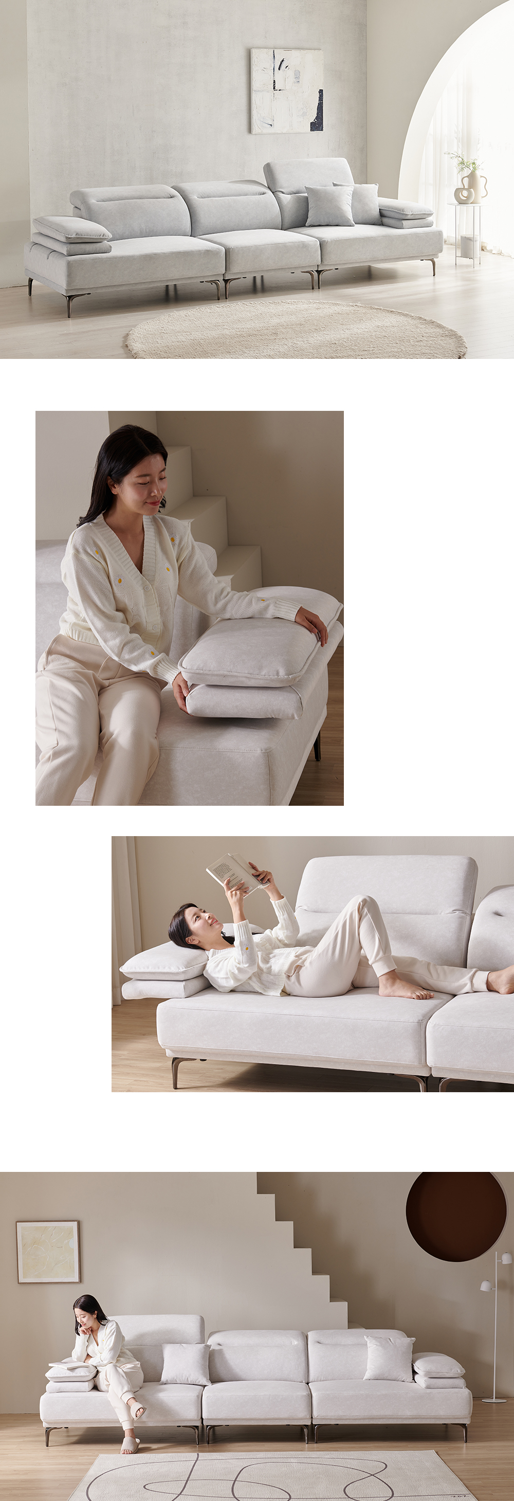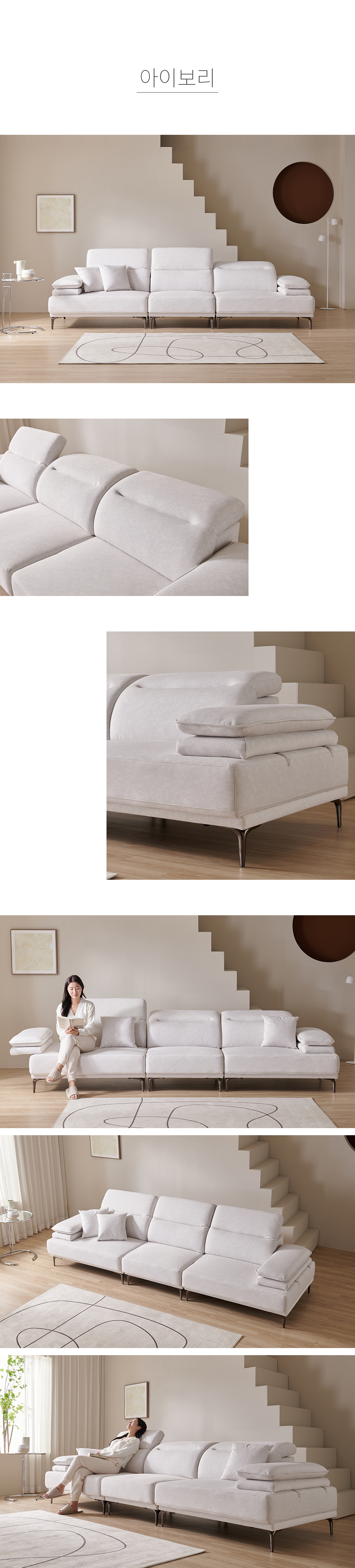 우아미가구 밀키 5인 무빙헤드 갤럭시 패브릭 소파 2color